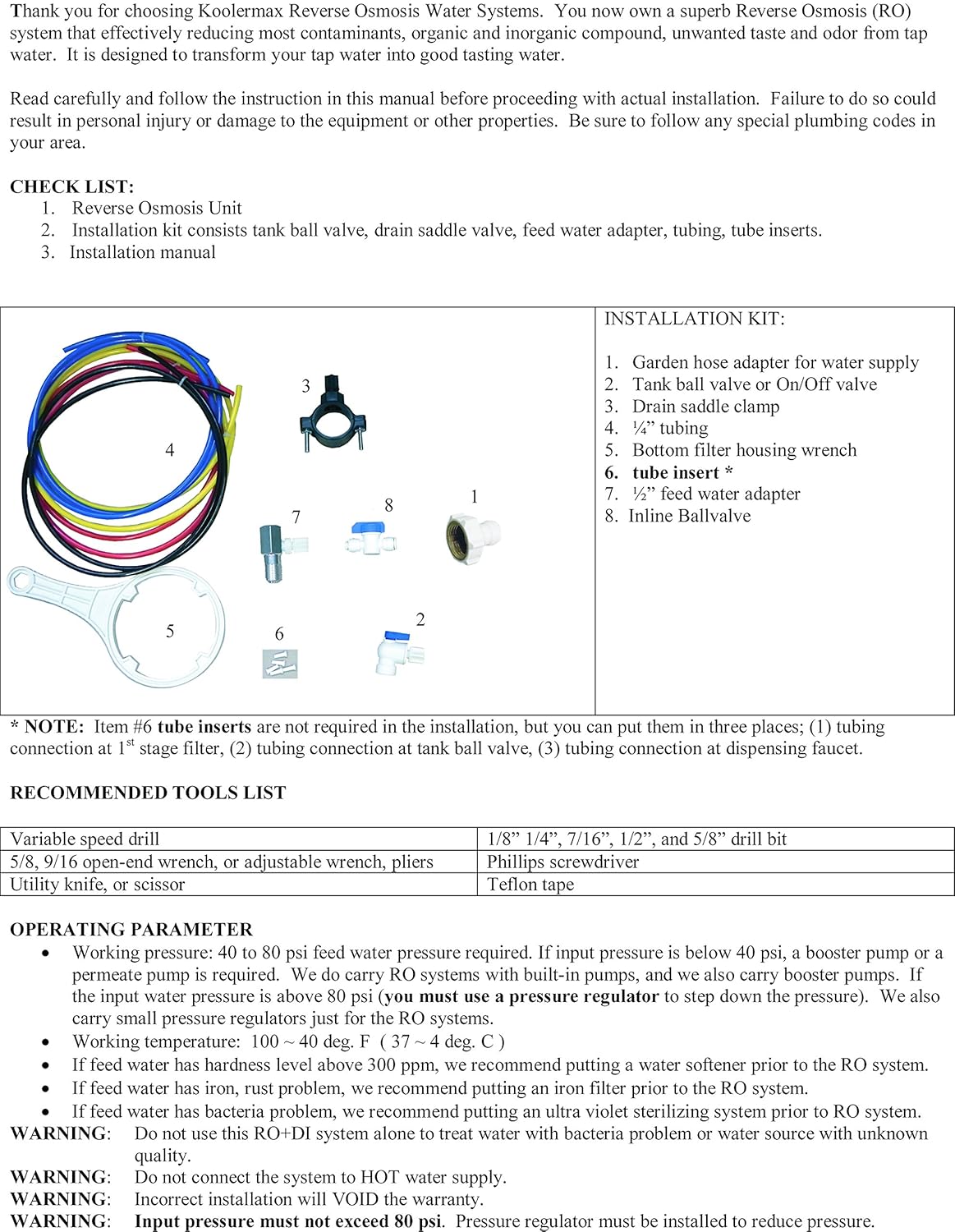- The system comes complete with all filters, tubing, instruction, under-the-sink installation hardware and extra garden hose adapter