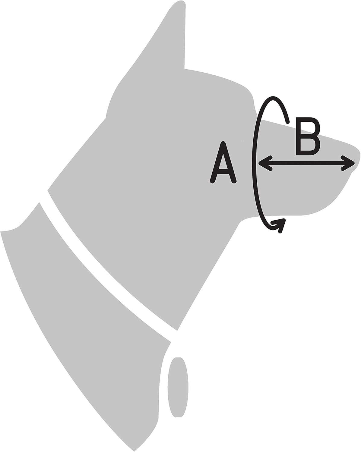 - PLEASE MEASURE: circumference (value A on the second photo) and length (value B on the second photo) of your dog's snout to confirm size. Size M: A is 11". B is 4". Size L: A is 13". B is 4".