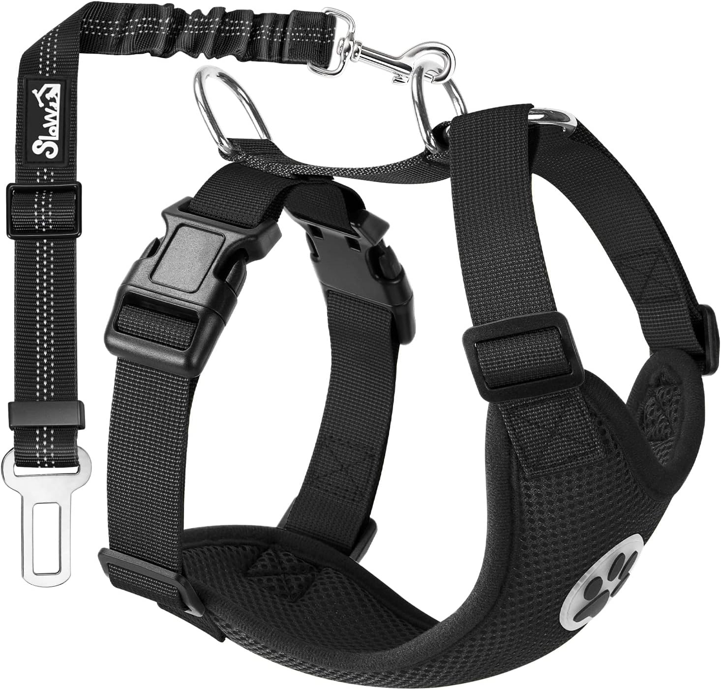 SlowTon Dog Seat Belt Harness for Car, Dog Car Harness Adjustable Mesh Breathable & Dog Seatbelt Safety Tether with Elastic Bungee for Small Medium Large Pets(Black, Single Clip, XXXS)
