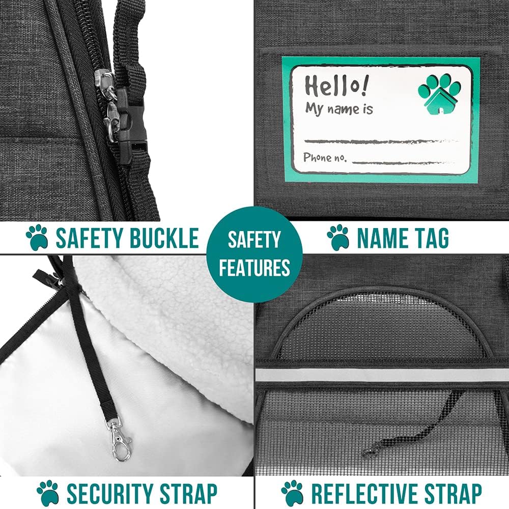 - AIRLINE APPROVED CAT CARRIER: Airline compliant and fits under most airplane seats, this tsa approved pet carrier is easy to carry on in different ways. Besides top handle strap and a removable shoulder strap, the pet travel bag is equipped with side buckles for car seat belt loops. Comes with an identification name tag, and a zipper pocket on the front to store pet stuff, treat, food, toy, or personal items, phone and cards, this soft cat taxi is the most convenient carrier for travels.