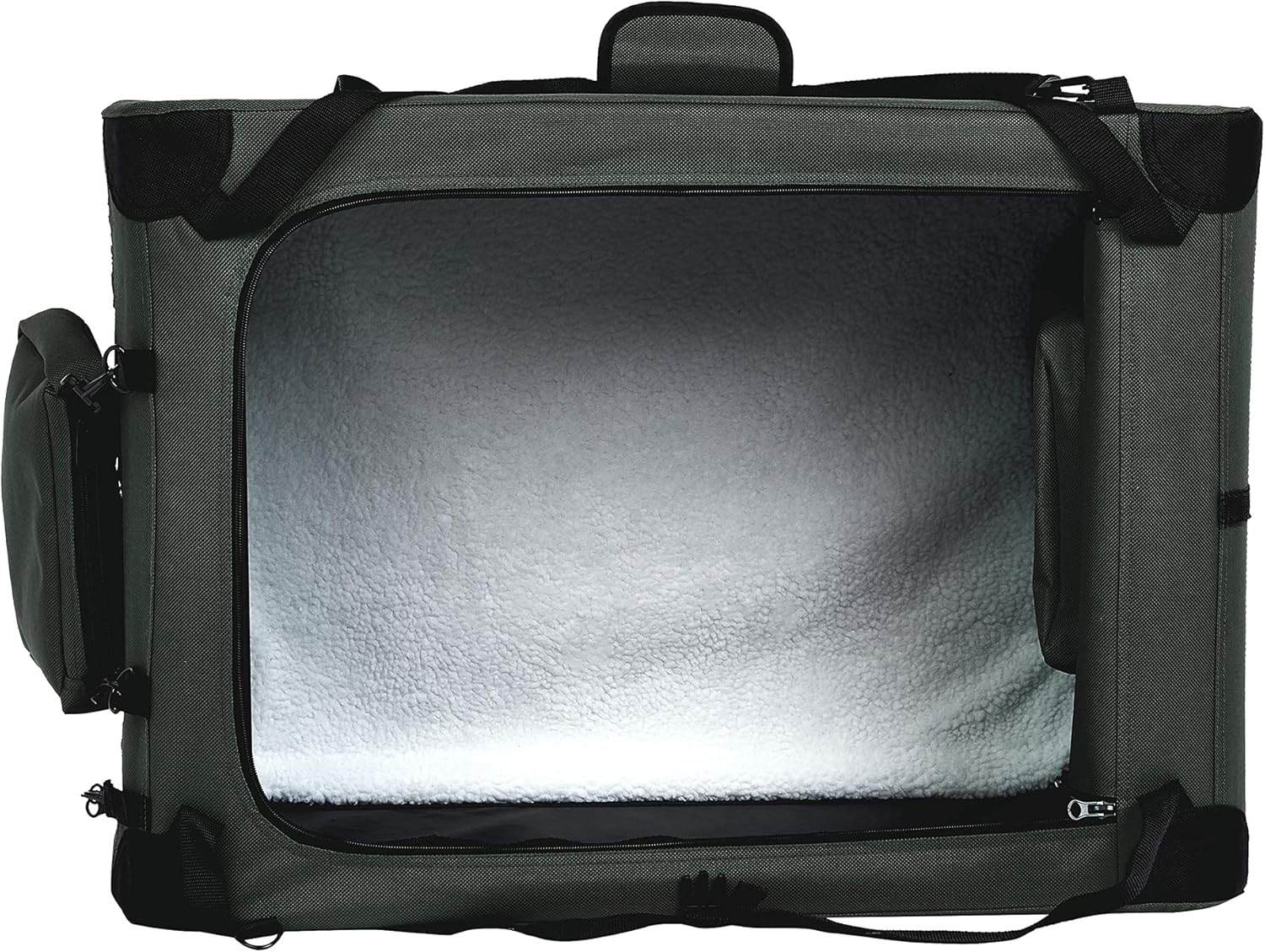 • Soft-sided carrier in Grey with top and front openings; for pets up to 75 pounds and under 26 x 17 inches (LxH), like a French Bulldog or Miniature Pincher