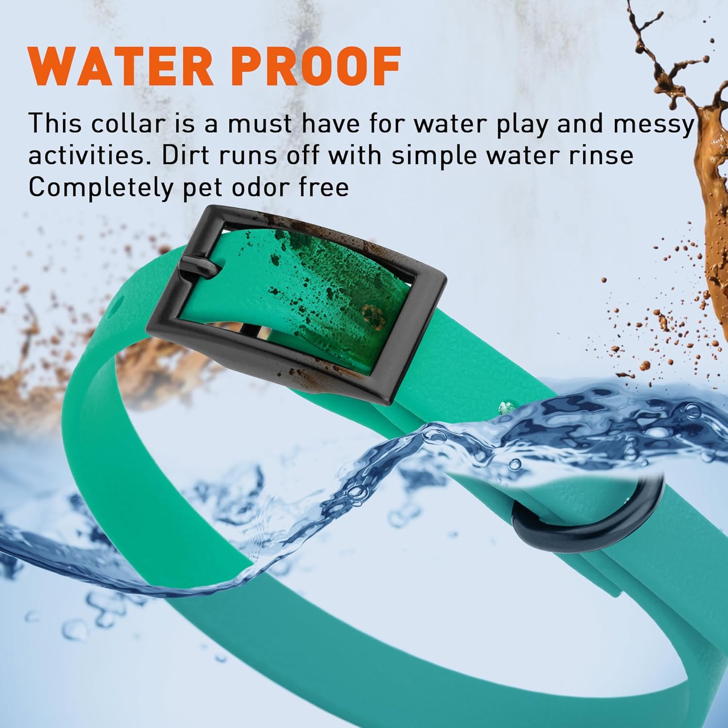 Dogline Biothane Waterproof Dog Collar Strong Coated Nylon Webbing with Black Hardware Odor- Proof for Easy Care Easy to Clean High Performance Fits Small Medium or Large Dogs, Teal