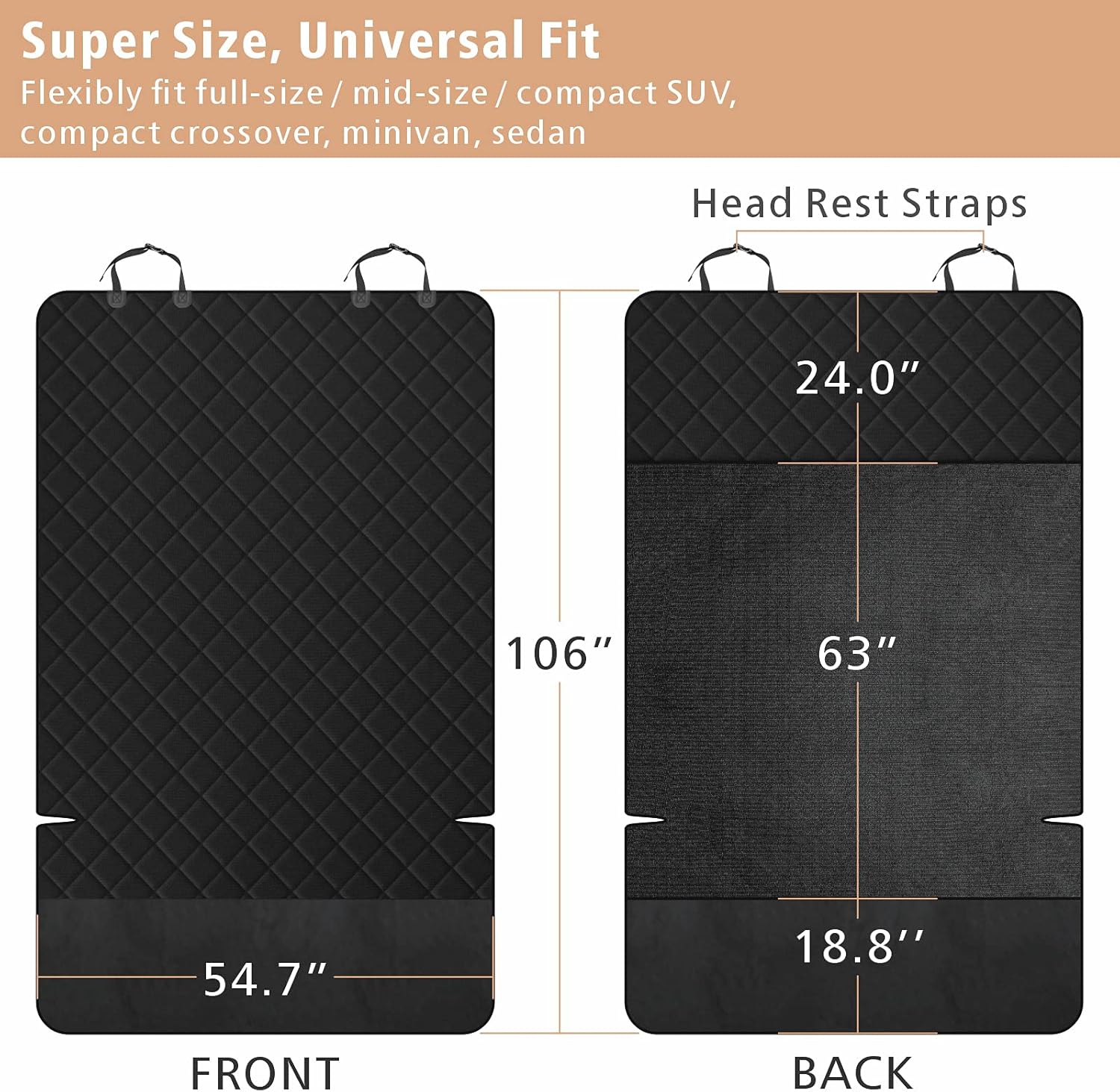 - Water Resistant Cargo Liner: 4 water-resistant layers quilted, wear-proof 600D oxford fabric protect your car seat from pet dander, hair, spills, odors, mud and water; Easy to clean just by wiping away dirt or vacuuming. Tips: If there's a pee accident, please clean immediately.