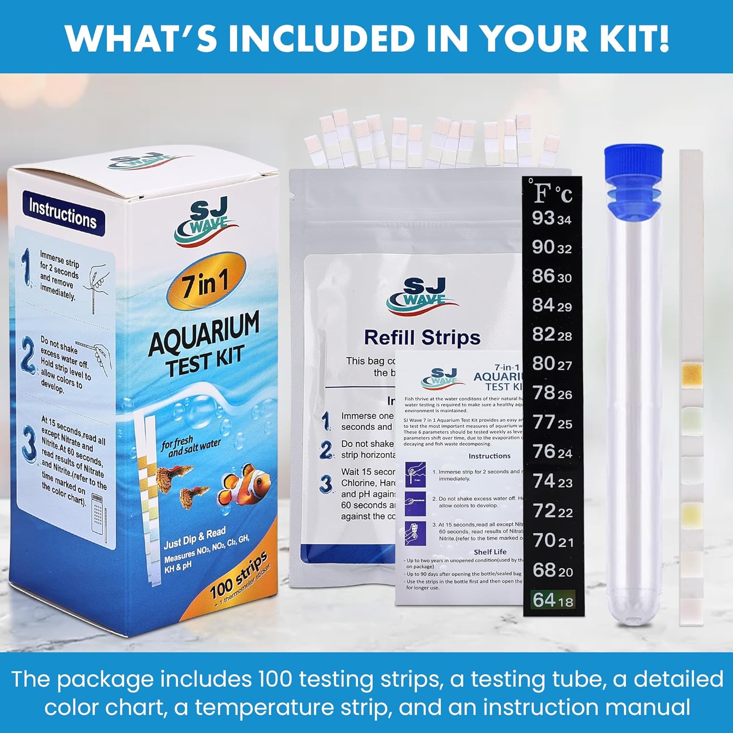 - šš”š¦š§šš”š§ š„šš¦šØšš§š¦ šš§ šš¢š š - Testing 7 key parameters in your aquarium is easier than ever with just one strip. Dip the strip in water and use the provided color chart for instant, reliable results. Say goodbye to frequent trips to pet stores because now you have our home water test kit that can monitor your aquarium's water quality in the comfort of your home.