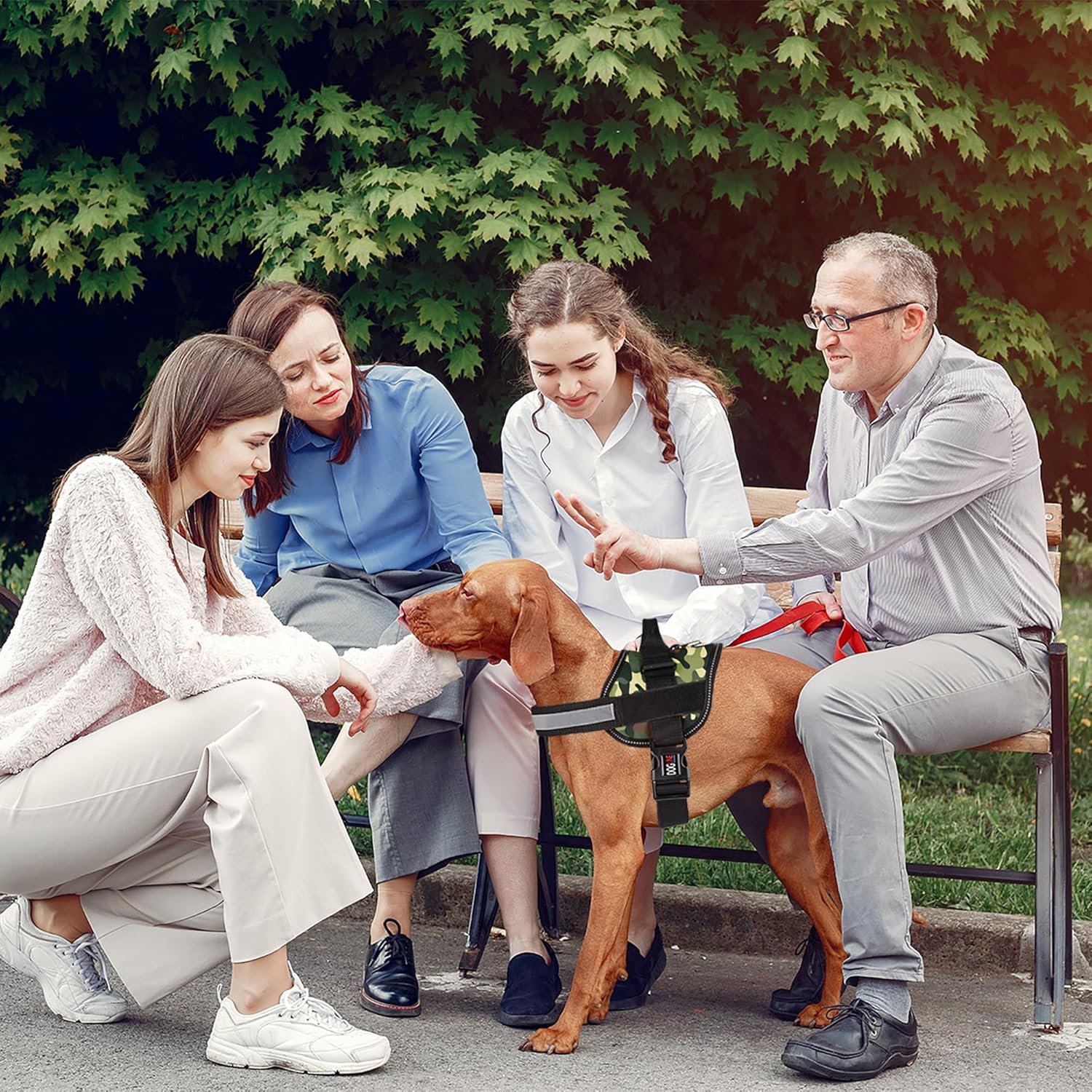 Dogline Dog Harness, Reflective No-Pull Adjustable Vest with Handle, Breathable No-Choke Harness for Small, Medium or Large Dogs Room for Patches Girth 27 to 34 in Green Camo