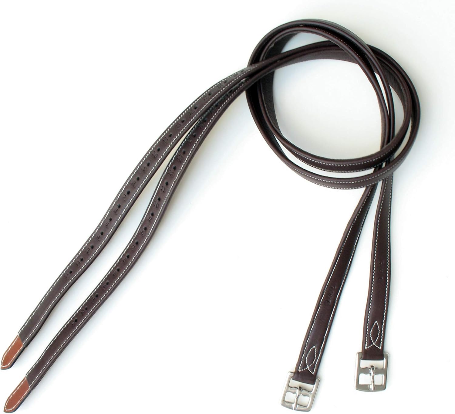 Exion FlexiStrong Stirrup Leathers for English Saddle | Ultra-Soft Cow Calfskin with Nylon Core | 1” Wide Stirrup Leathers for Daily Use | Sizes 48" to 62" | Black, Brown