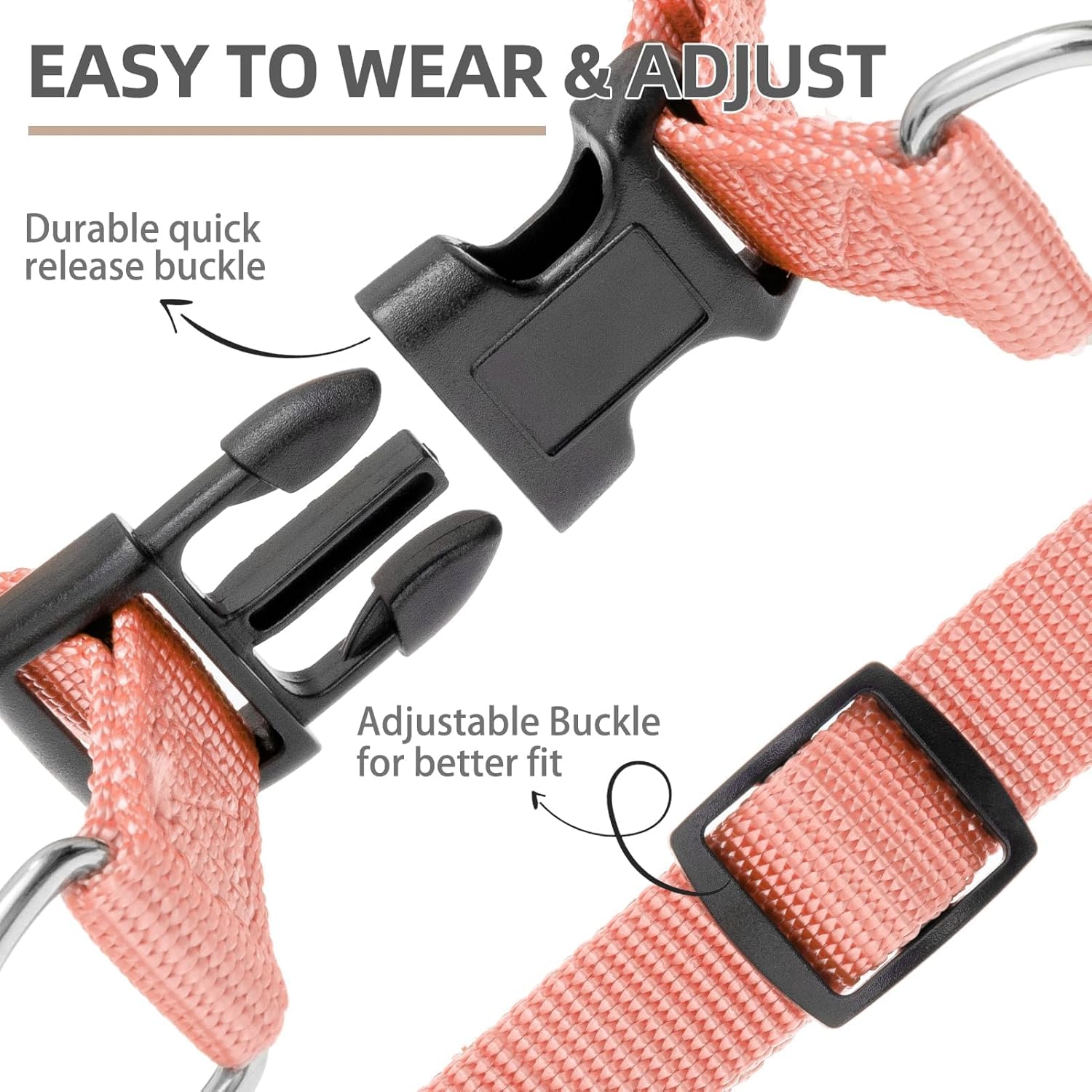 - [Size Guide] - Available Size for Different Breed Dogs - [XS - Strap width 1/2", chest girth 12"-14.8"], [S - Strap width 1/2", chest girth 14.8"-20.5"], [M - Strap width 3/4", chest girth 17.5"-23"], [L - Strap width 1", chest girth 22"-30.5"]. The straps are adjustable to provide maximum comfort and reliable fit. It is recommended that you adjust the suitable size before putting it on your dog, which will save more time for wearing.