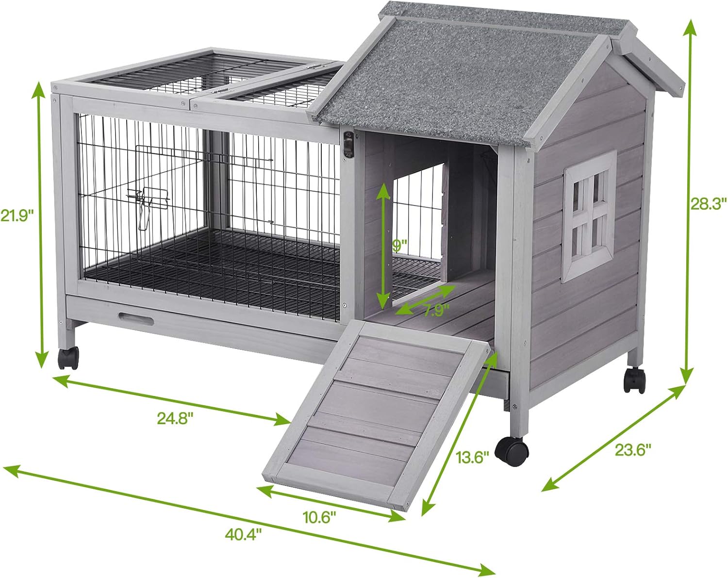 Indoor Rabbit Hutch Bunny Cage with 4 Casters, Bunny Hutch -Removable Wire Grate