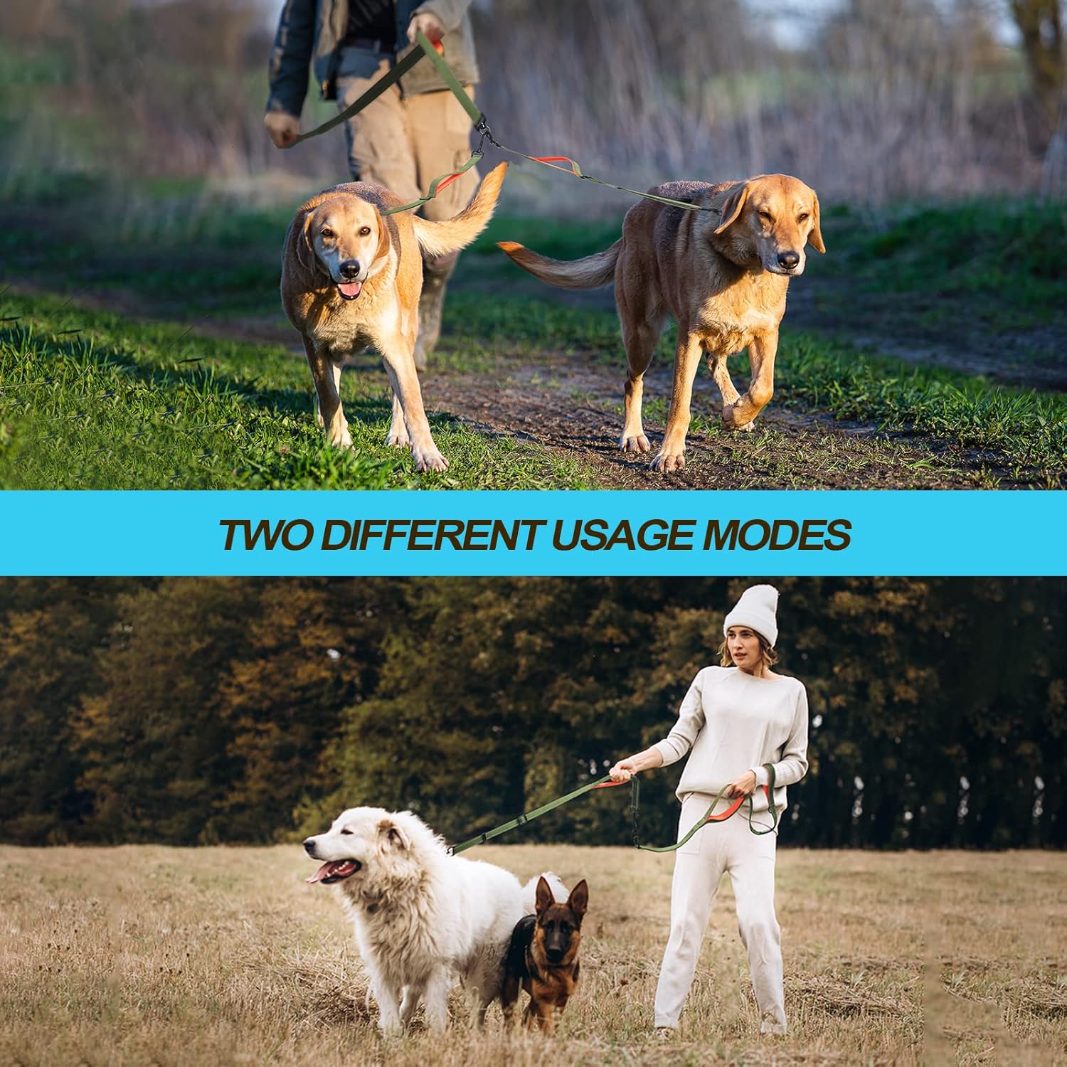 • No Tangle Double Dog Leash: 360° swivel clasps help to keep your dogs from getting tangled together. No need to worry about getting twisted two dog leash when dogs switch sides