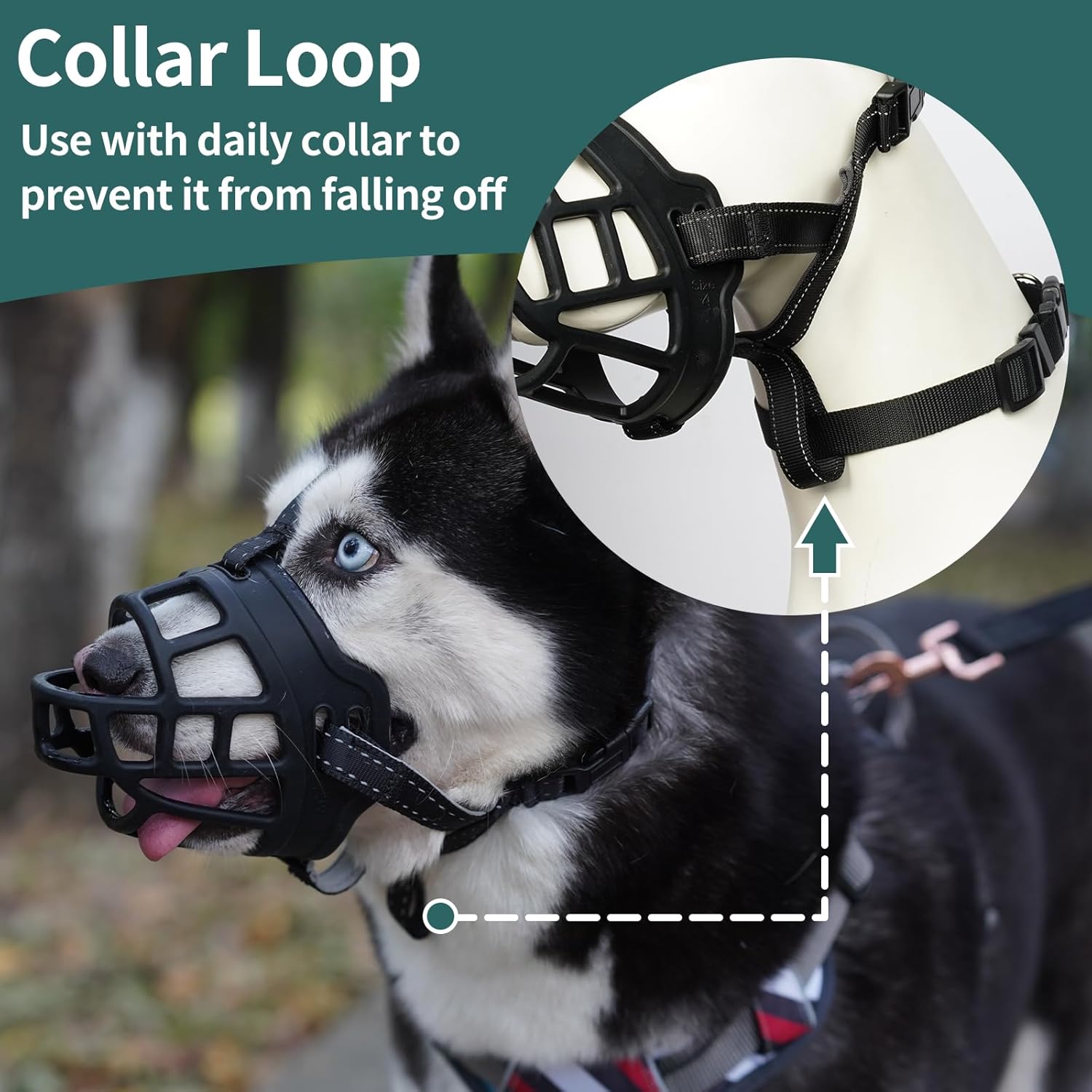 • Stable and Adjustable: This dog muzzle has one additional safety loops, which can be connected to your dog's regular collar. This is a more sturdy anti-scratch design. Adjustable straps at neck and head helps you to adjust the tightness at will