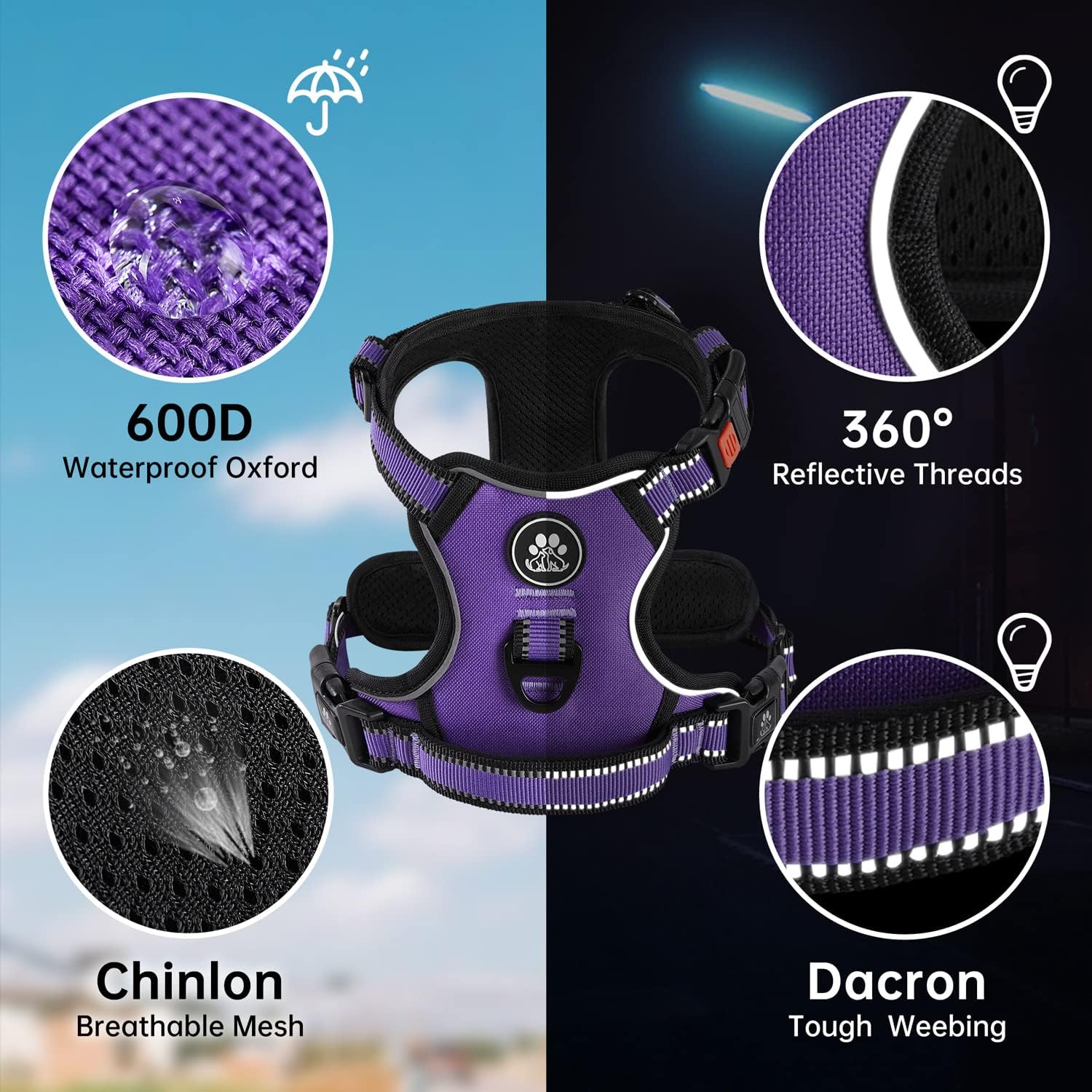 NESTROAD No Pull Dog Harness,Adjustable Oxford Dog Vest Harness with Leash,Reflective No-Choke Pet Harness with Easy Control Soft Handle for Large Dogs(X-Large,Purple)