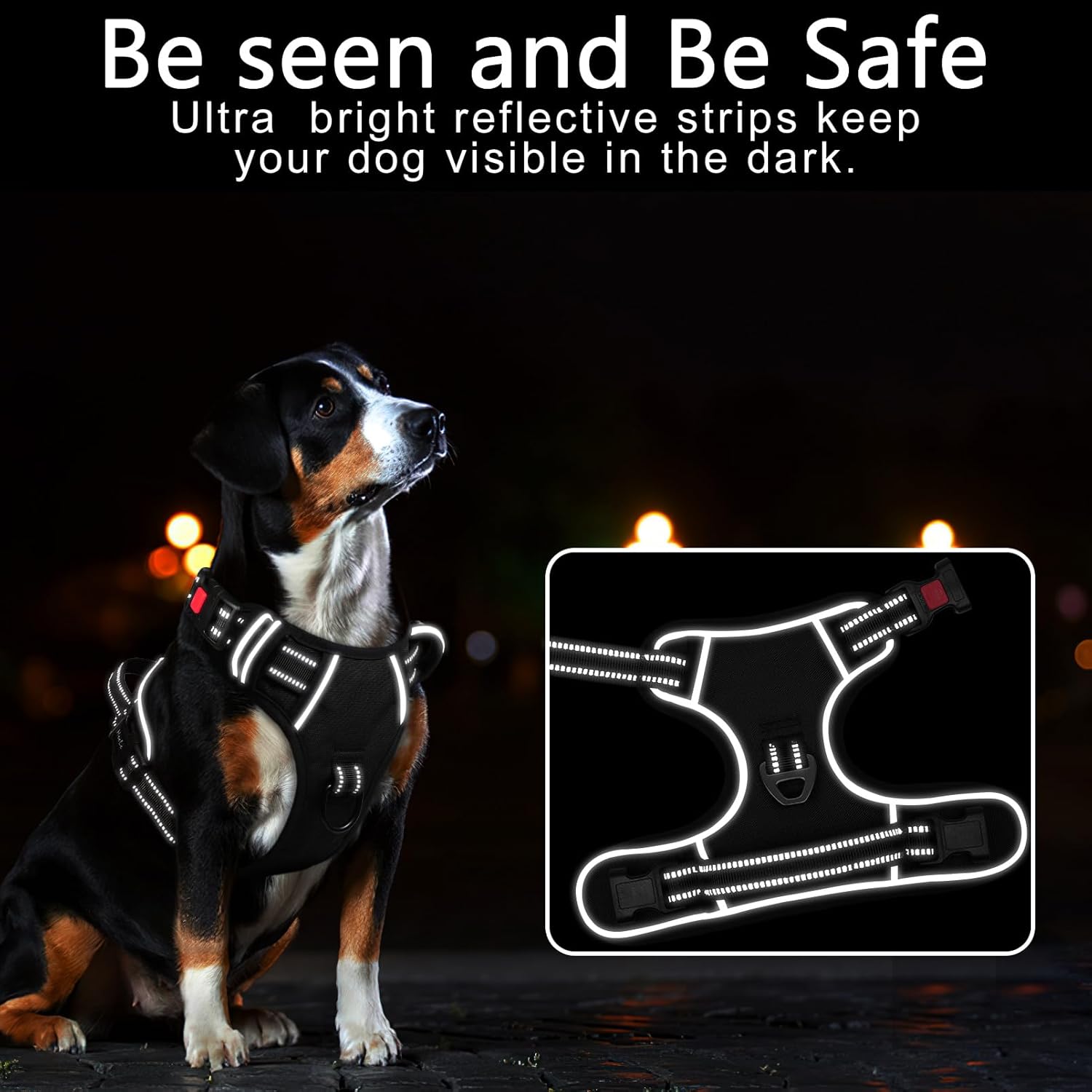 Timos No Pull Dog Harness, Release at Neck Reflective 3 Snap Buckles Adjustable No Choke Pet Vest with Front & Back 2 Leash Clips, Soft Padded Control Training Handle for Small Medium Large Dogs