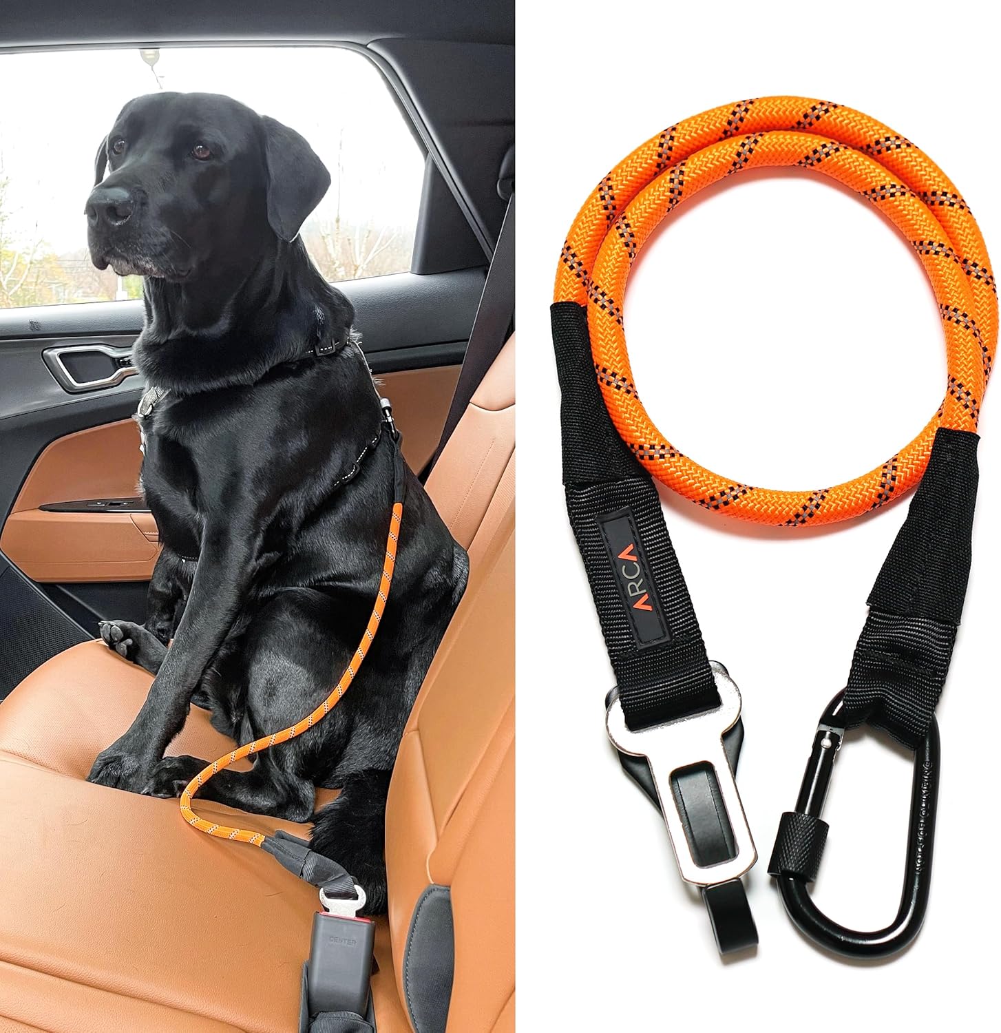 Dog Seat Belt for Car | Universal Dog Car Seatbelt | Durable Reflective Rope with Clip Hook Latch, Buckle and Carabiner- Safe and Secure Pet Safety Restraint (Orange)