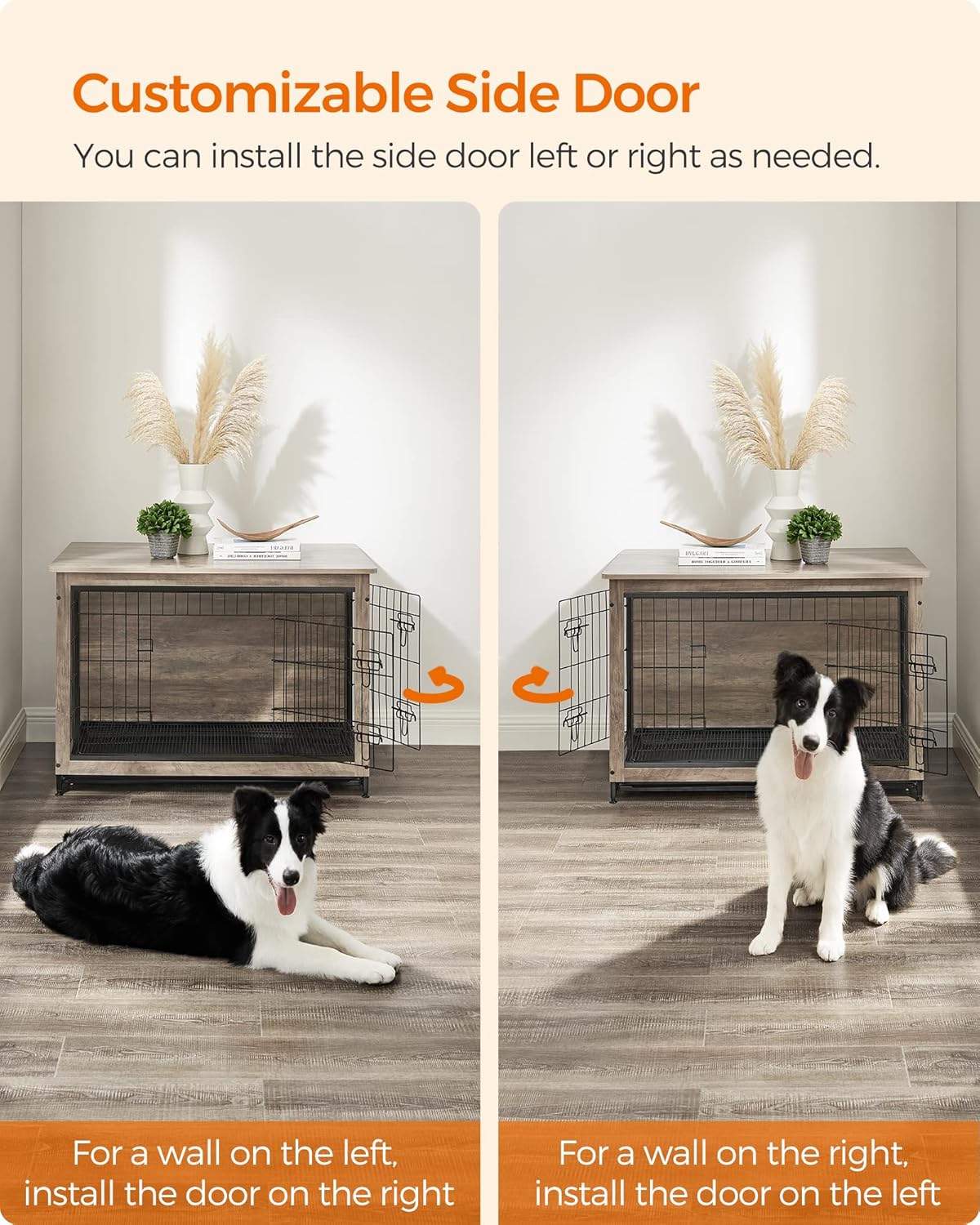 - [Sturdy and Chew-Resistant] Made with durable particleboard and steel, this piece of dog furniture is sturdier and more chew-resistant than wooden dog crates, offering a lasting, stable, and safe retreat for your fur friend