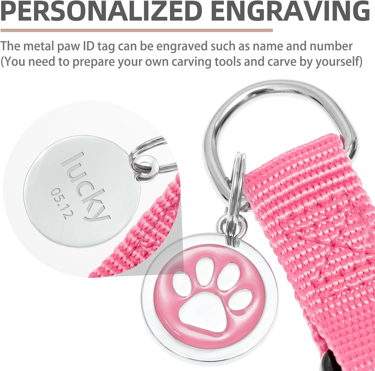 • [Cute ID Tag for DIY] - Each harness is equipped with a metal ID tag, and the front is a cute paw pattern, while on the back, you can engrave whatever you want, such as the dog's name and so on. It does not corrode as easily as wooden labels and is durable. You can also remove it when washing the harness.