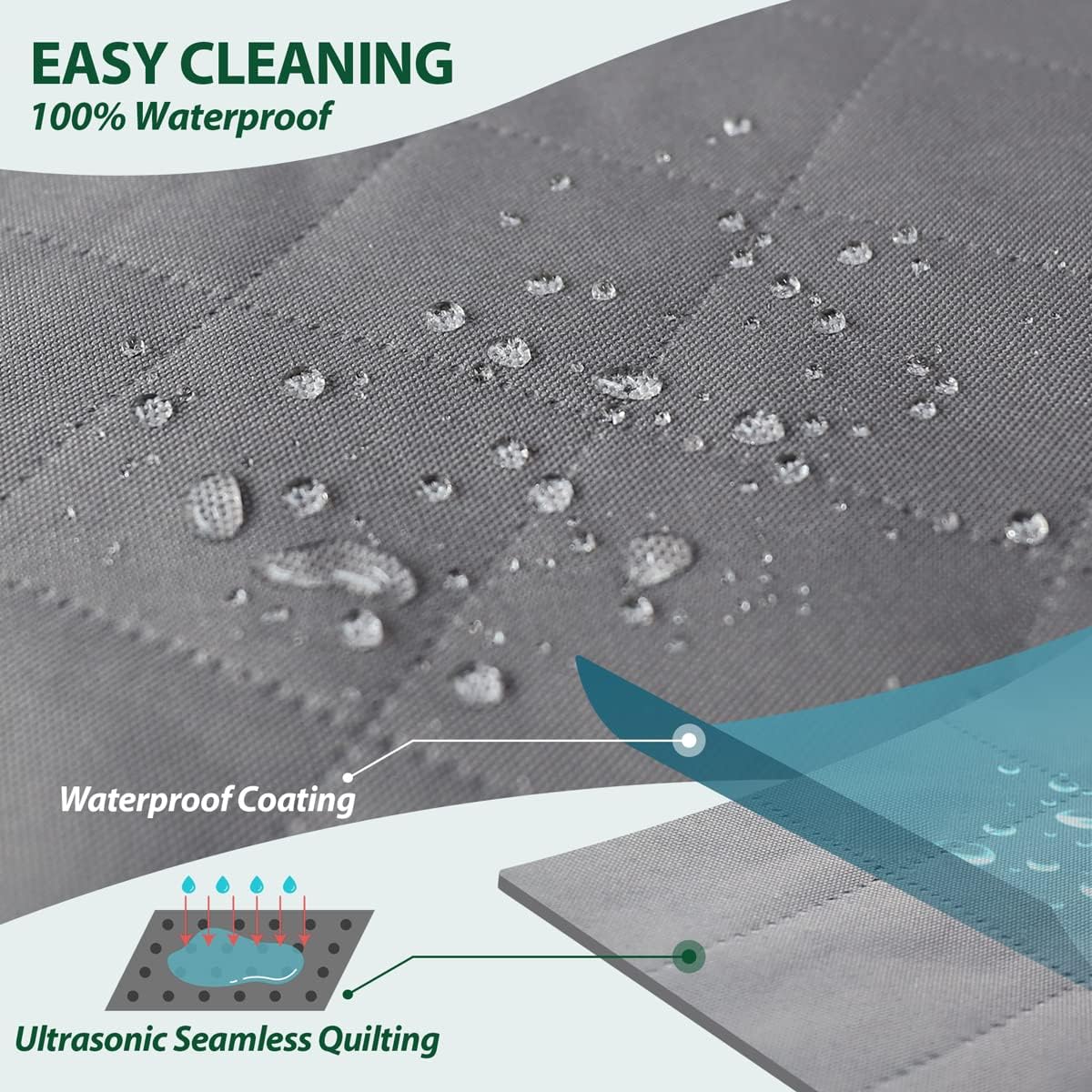- WATERPROOF DURABLE COVER: Made of heavy-duty 600D oxford fabric with Teflon coating and ultrasonic seamless quilting, this seat cover is 100% waterproof, wear-resistant and built to handle daily use