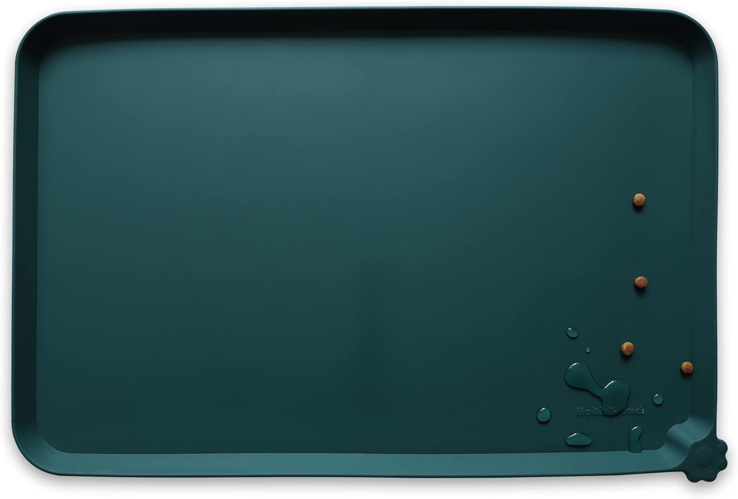 Hoki Found Large Silicone Pet Food Mats - Non Slip Dog Cat Bowl Placemats - Waterproof Dog Cat Food Mats - Dark Cedar