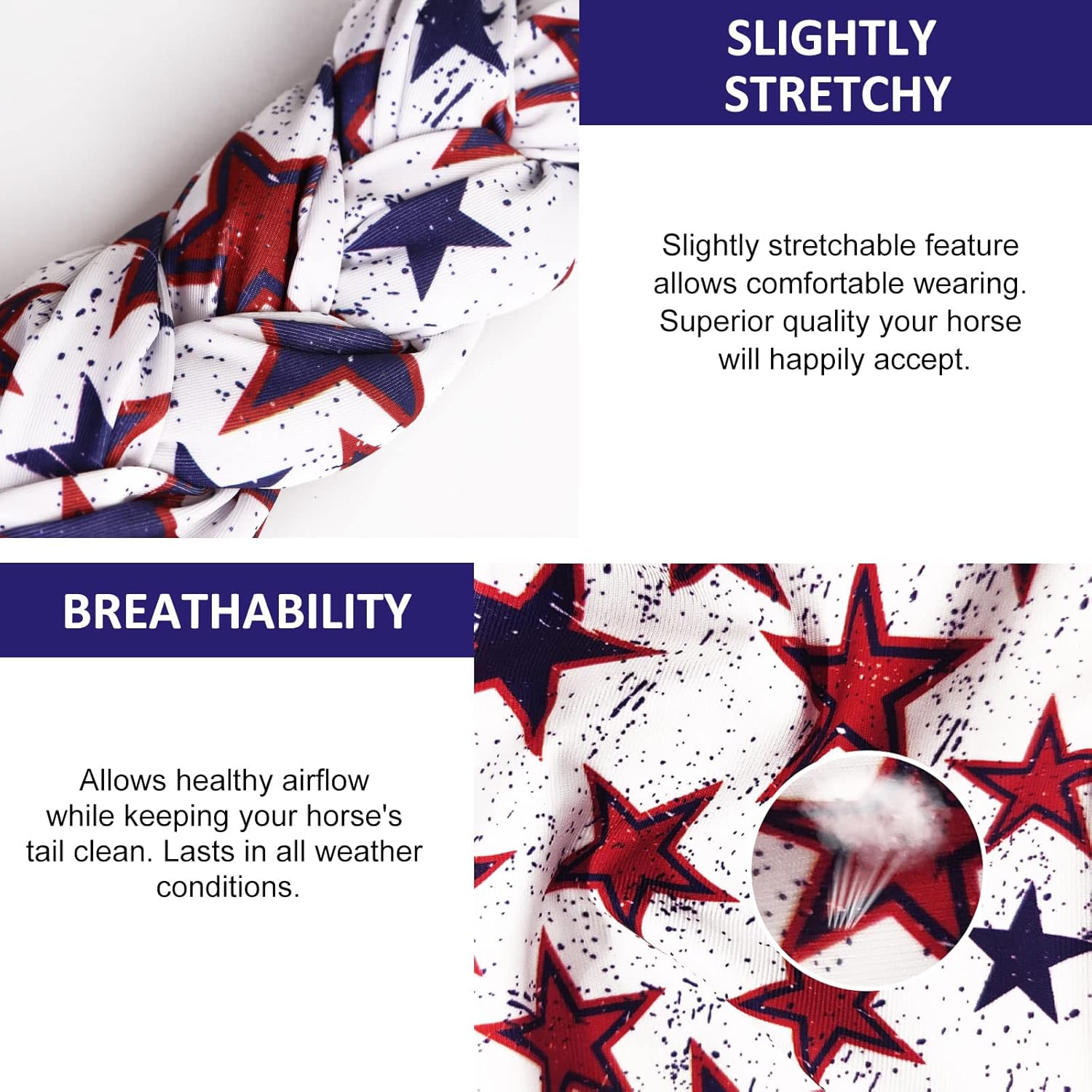 • Breathable: Allows healthy airflow while keeping your horse's tail clean, and tangle-free, and lasts in all weather conditions.