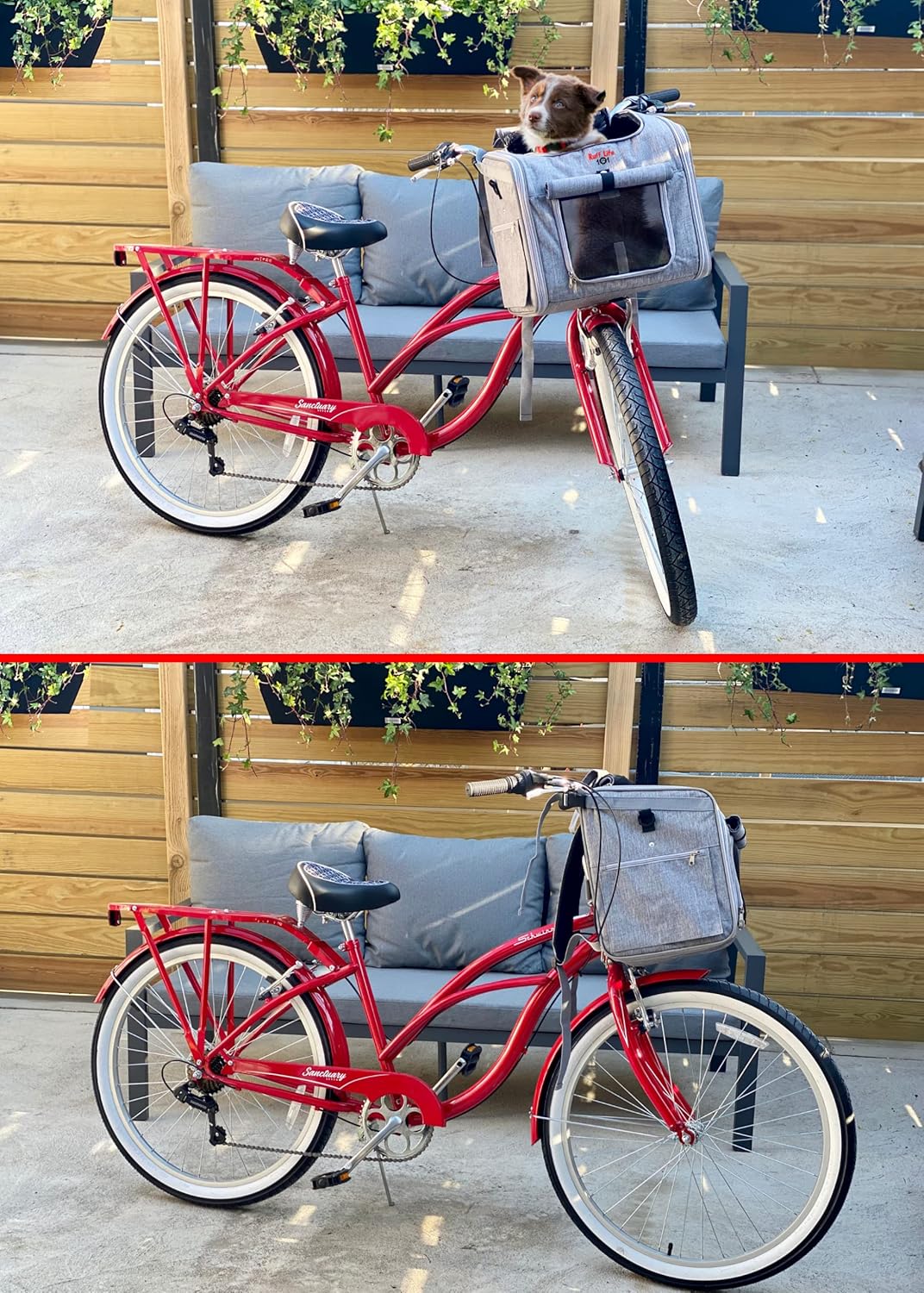 - MULTIFUNCTIONAL: Not only is this a bike basket, it can also be used as a pet backpack, a shoulder bag, and a car seat! This carrier also has 4 entrances to choose from for whichever way is most comfortable for your pet to get in and out.