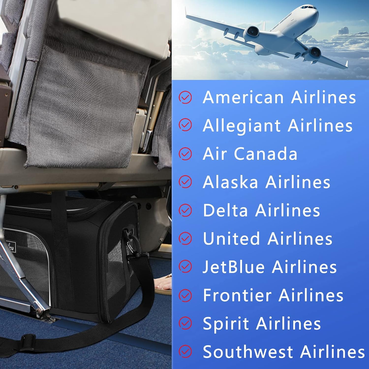 - š¶ćCHECK SIZE BEFORE PURCHASEćIn order to match the airline's under-seat size, this carrier can only accommodate small dogs and cats. We recommend that you carry pets that measure 17.7 "long x11" wide x8.3 "high and weigh under 13LB cat or 9LB dog. Please do not only choose the luggage rack based on the weight, but also refer to the length and height of the pet. Maximum size requirements of major airlines for soft-sided pet carriers: ā American Airlines: 19x13x9"ā”United Airlines: 18x11x11"ā¢Southwest Airlines: 18.5x13.5x8.5"ā£Alaska Airlines:17x11x11"ā¤Air Canada:21.5x15.5x10.5"ā„Delta Air Lines: 21.5x15.5x10.5"