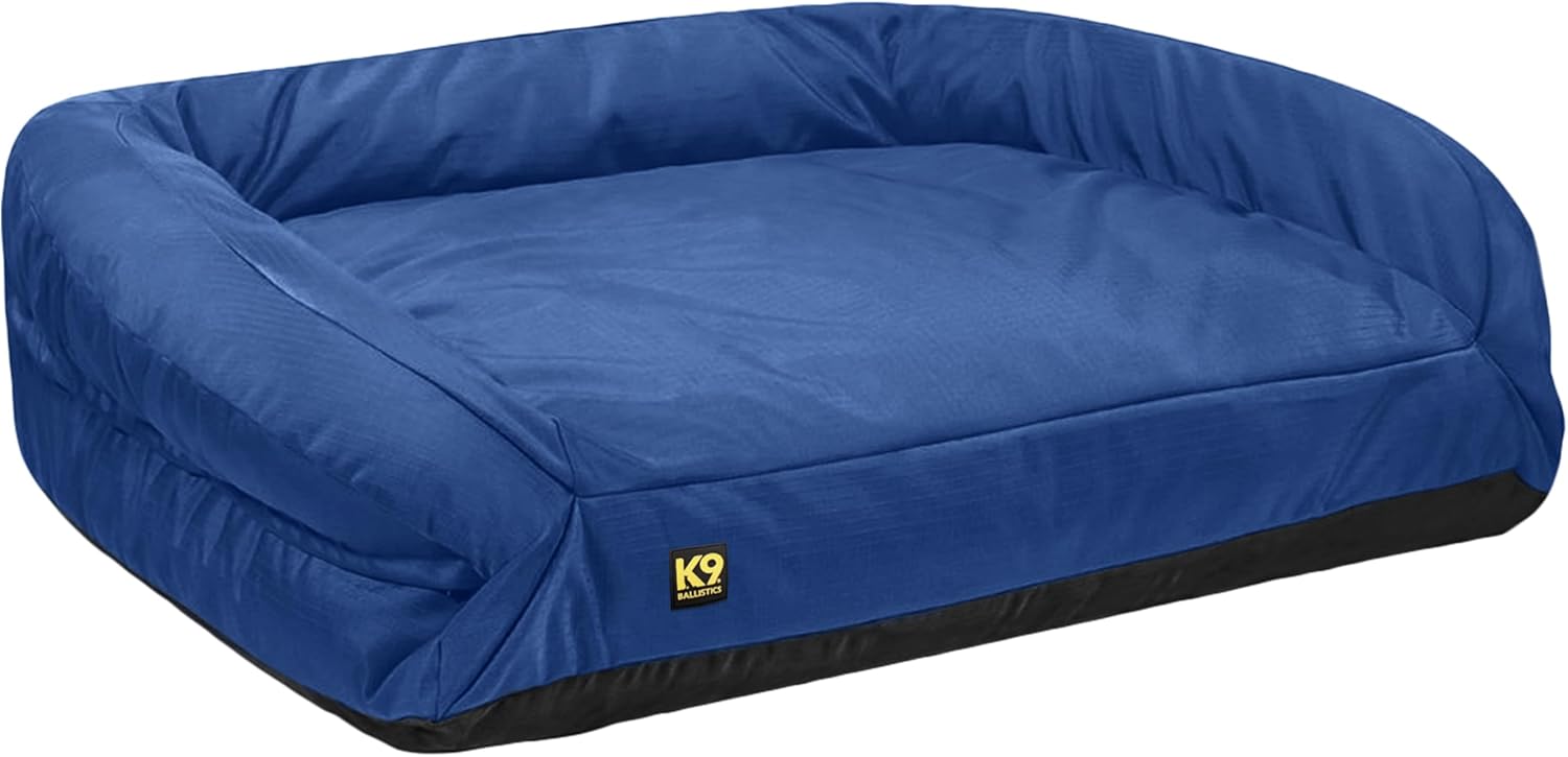 K9 Ballistics Tough Orthopedic Large Bolster Dog Bed - Washable, Durable and Water Resistant Dog Bed - Made for (L) Large Big Dogs, 40"x34", Blue Quartz