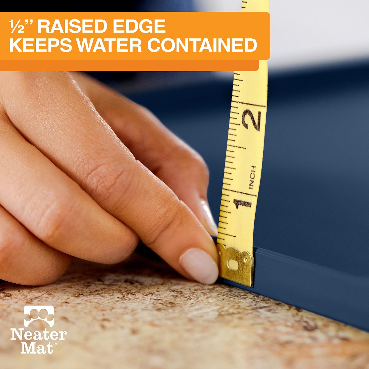 - EXTRA-HIGH RAISED EDGE: Dog water bowl mat measures 16” x 10” with a ½ inch raised edge. Having an anti-spill edge helps contain the water on the pet mat and prevent run-off. Cat or dog feeding mat easily fits two small sized bowls.