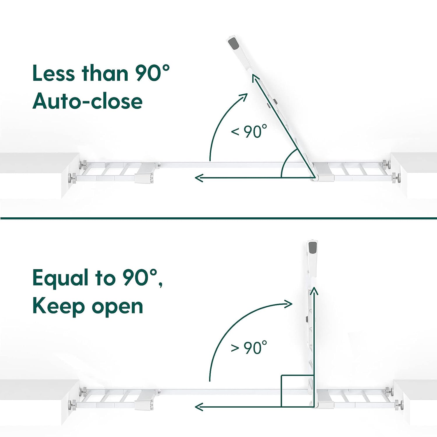 - AUTO CLOSE: This safety gate has an auto-close function that gently closes the gate and a stay-open feature that keeps it open. It can be opened easily with one-hand operation even while holding a baby, free to go through from both sides