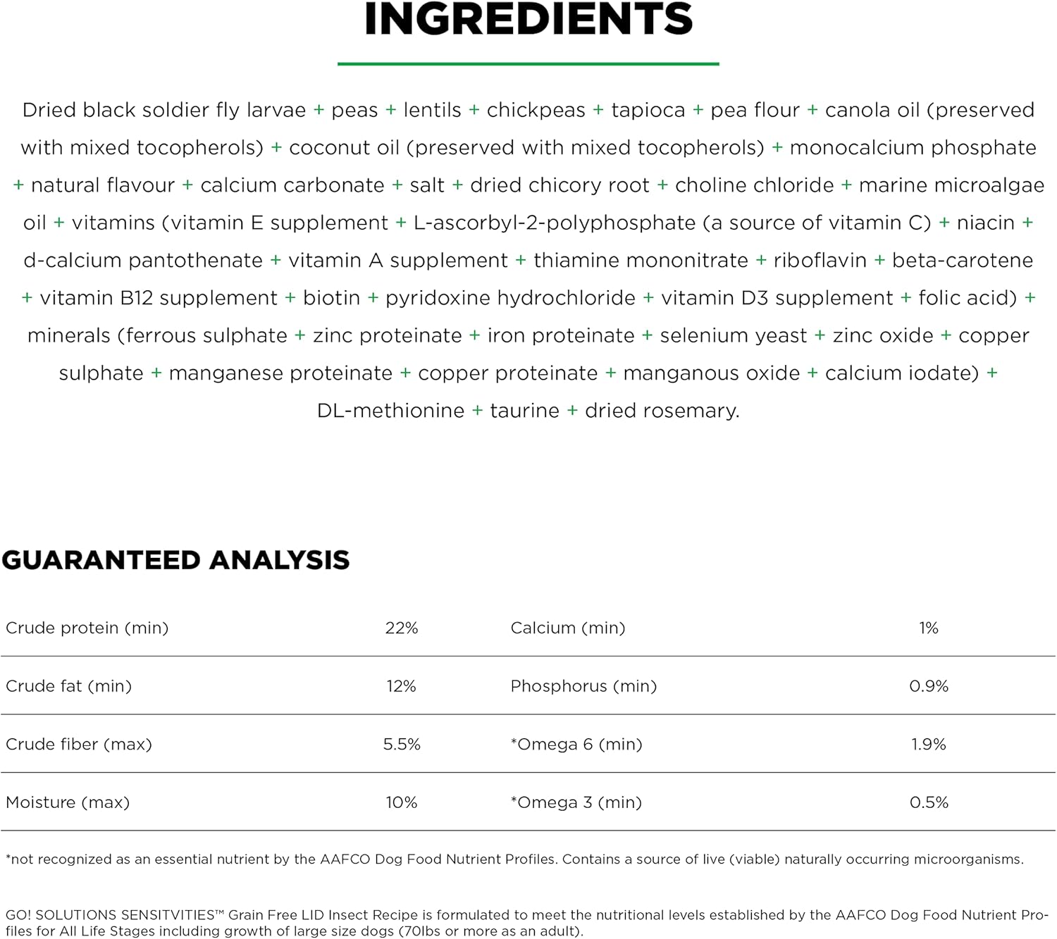 Go! Solutions Sensitivities Limited Ingredients, Grain-Free Dry Dog Food, Insect Recipe for Sensitive Stomach, 3.5 lb Bag