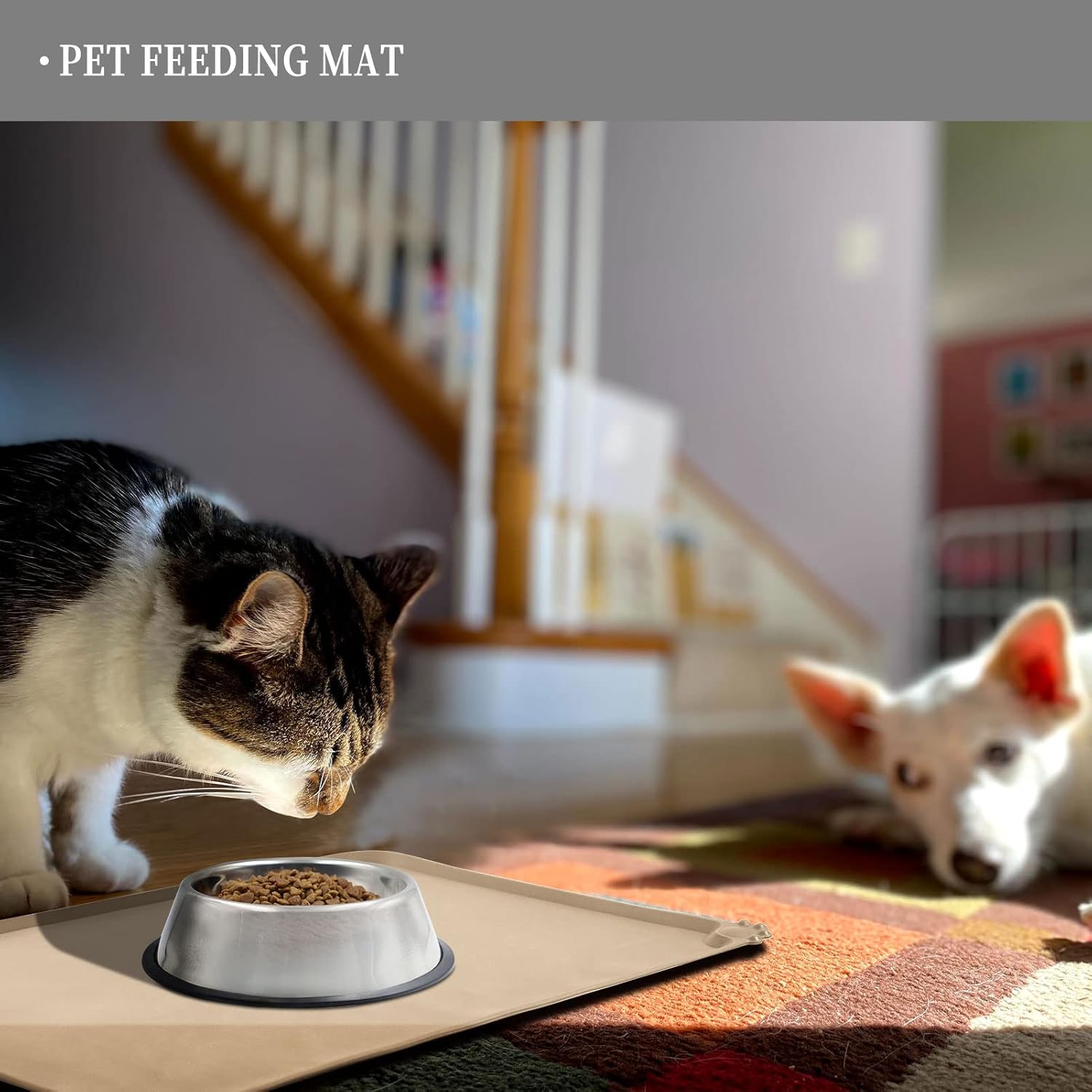 Waterproof Pet Feeding Mat with High Raised Edges, Heavier and Thicker Placemats for Cat Dog Water Bowl with BPA Free, Dogs Cats Food Mats for Messy Drinkers to Prevent Spill and Protect Floors