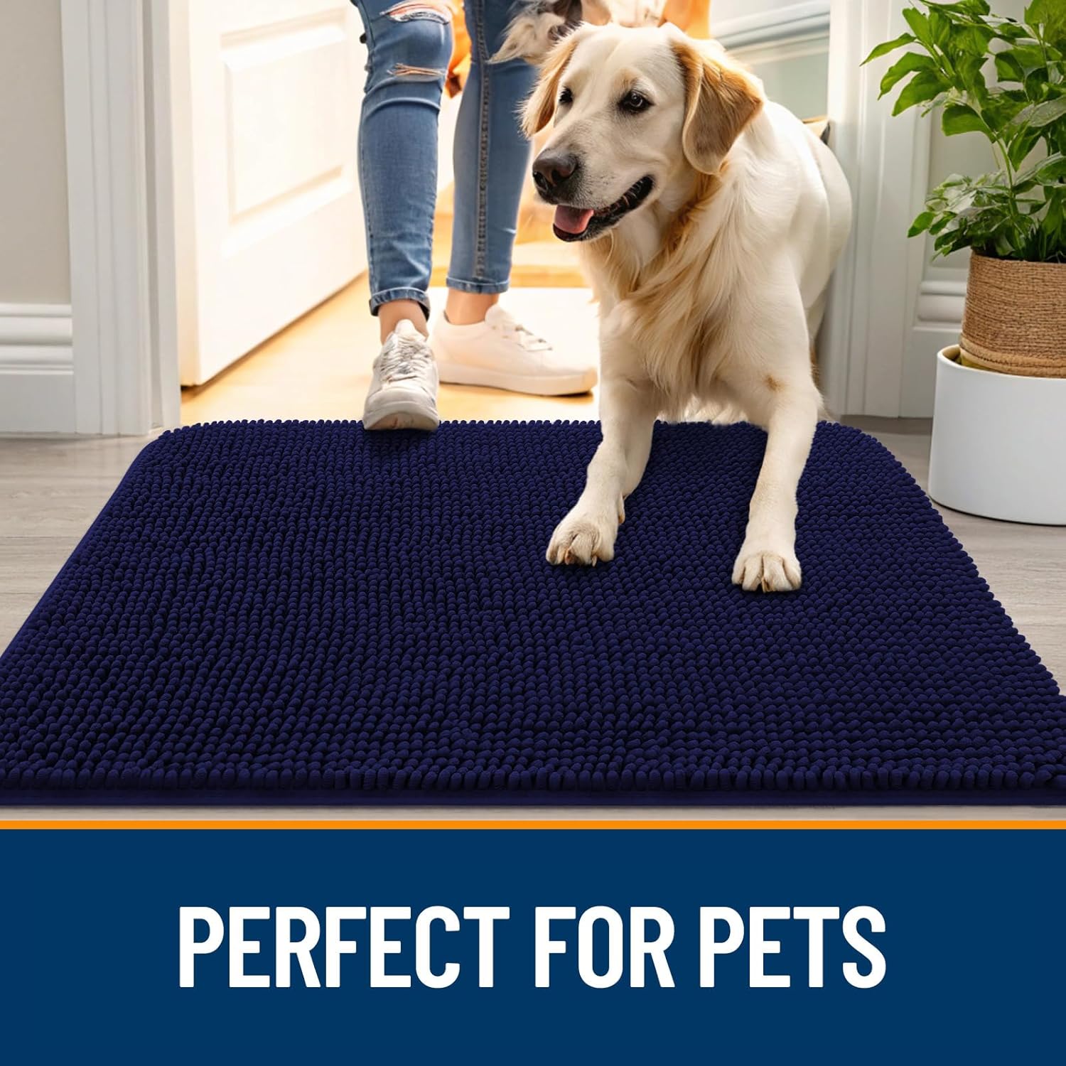 OLANLY Dog Door Mat for Muddy Paws 59x24, Absorbs Moisture and Dirt, Absorbent Non-Slip Washable Doormat, Quick Dry Chenille Mud Mat for Dogs, Entry Indoor Entryway Carpet for Inside Floor, Navy Blue