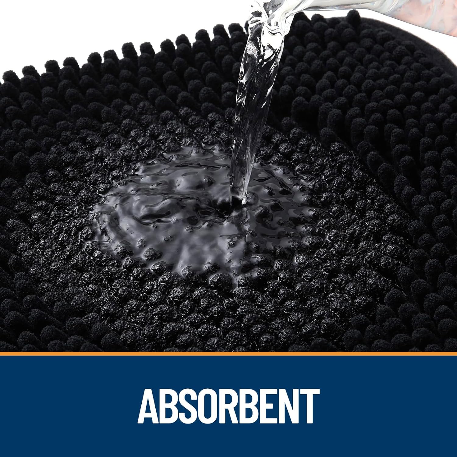 OLANLY Dog Door Mat for Muddy Paws 24x16, Absorbs Moisture and Dirt, Absorbent Non-Slip Washable Doormat, Quick Dry Chenille Mud Mat for Dogs, Entry Indoor Entryway Carpet for Inside Floor, Black
