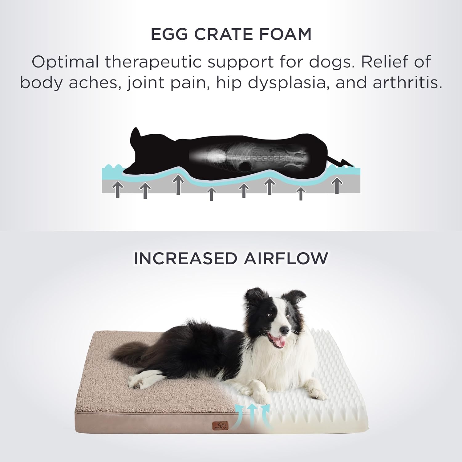 - Orthopedic Support: Designed to give your pet unparalleled support for a deep, dreamy sleep. High-density egg-crate foam distributes weight evenly and provides the perfect amount of pressure relief to reduce joint pain and arthritis discomfort.