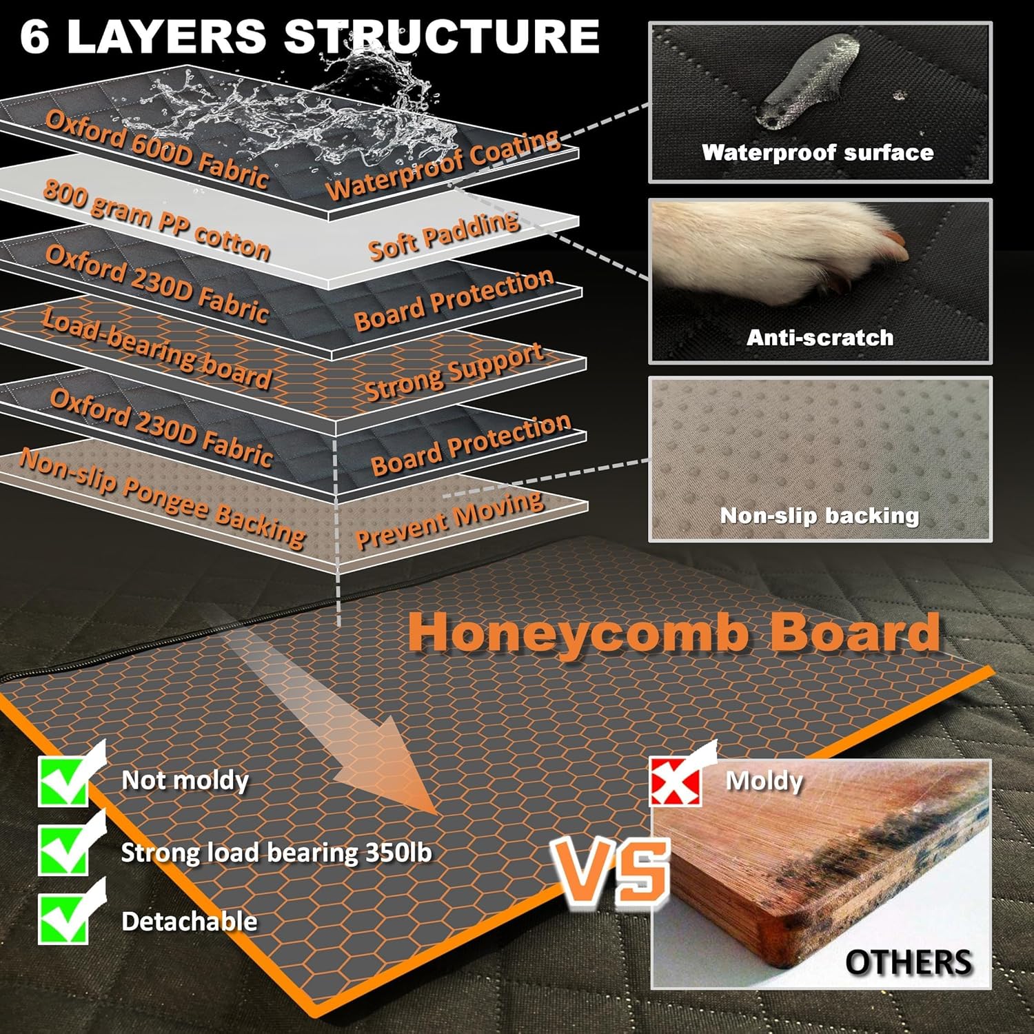 Back Seat Extender for Dogs Cats,Car Seat Cover with Hard Support,Waterproof Dog Hammock for Car Travel,Foldable Camping Bed Mattress for SUV Truck(Black)