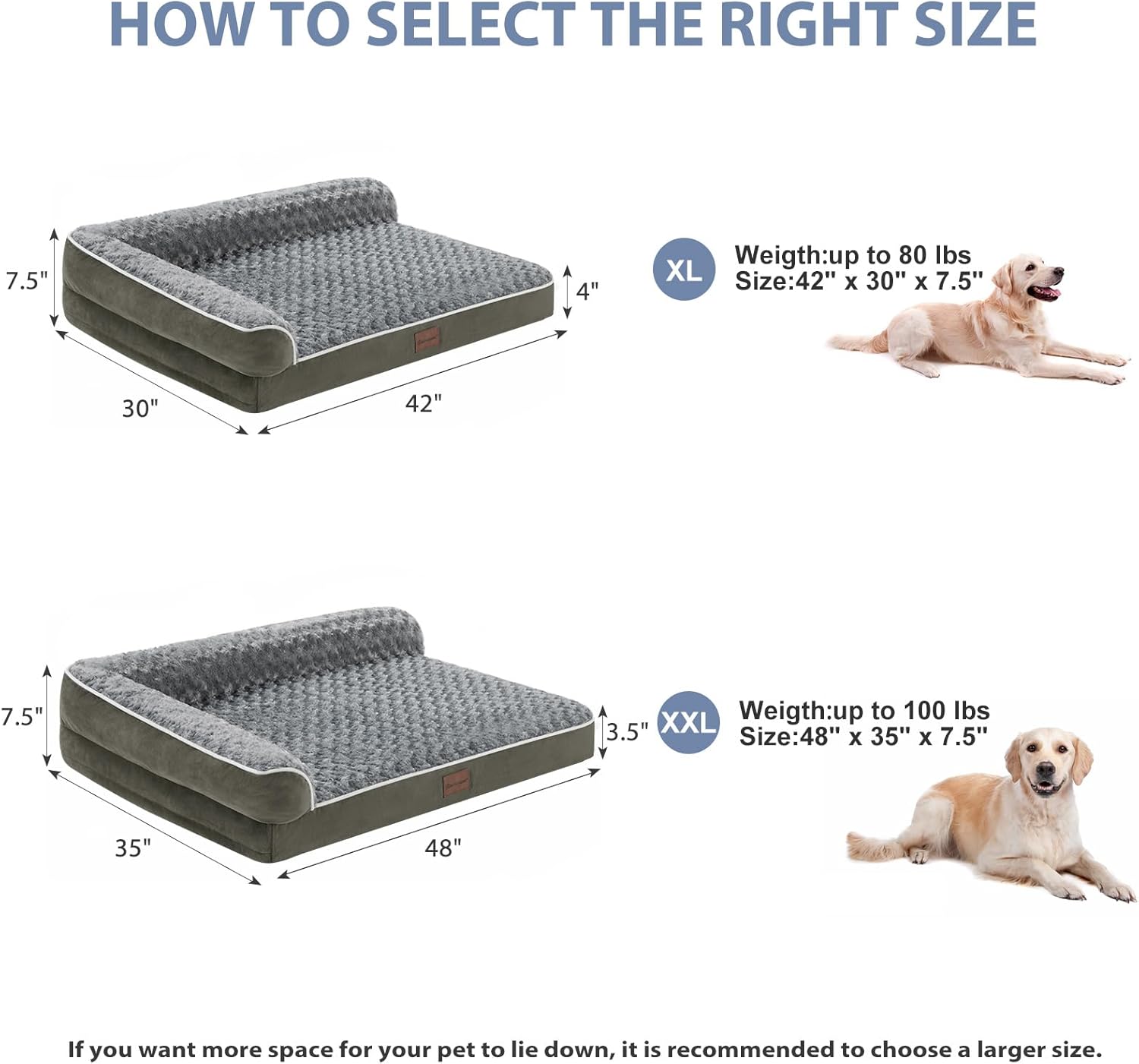 • SIZE(DOG BEDS FOR EXTRA DOGS): The dimensions of this XXL dog bed are 48“ x 35" x 7.5". XXL dog beds for extra large dogs up to 100 lbs. This orthopedic dog couch will give your pet more space and allow your friend to stretch out on the bed.