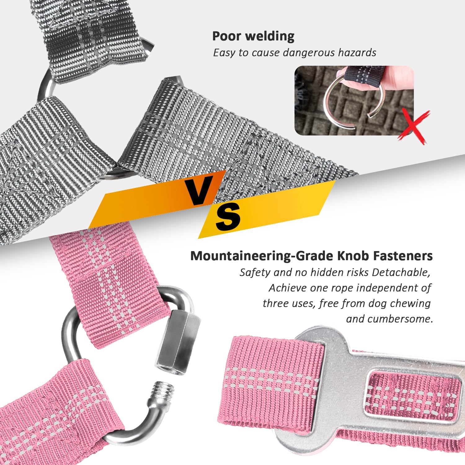Removable Dog Seat Belt Harness for Car, 3 in 1 Pet Dog Car Seatbelt Leash, Retractable Restraint Secures to Vehicle Headrest & Adjustable Reflective Bungee Dog Seatbelt Tether, Pink and Black