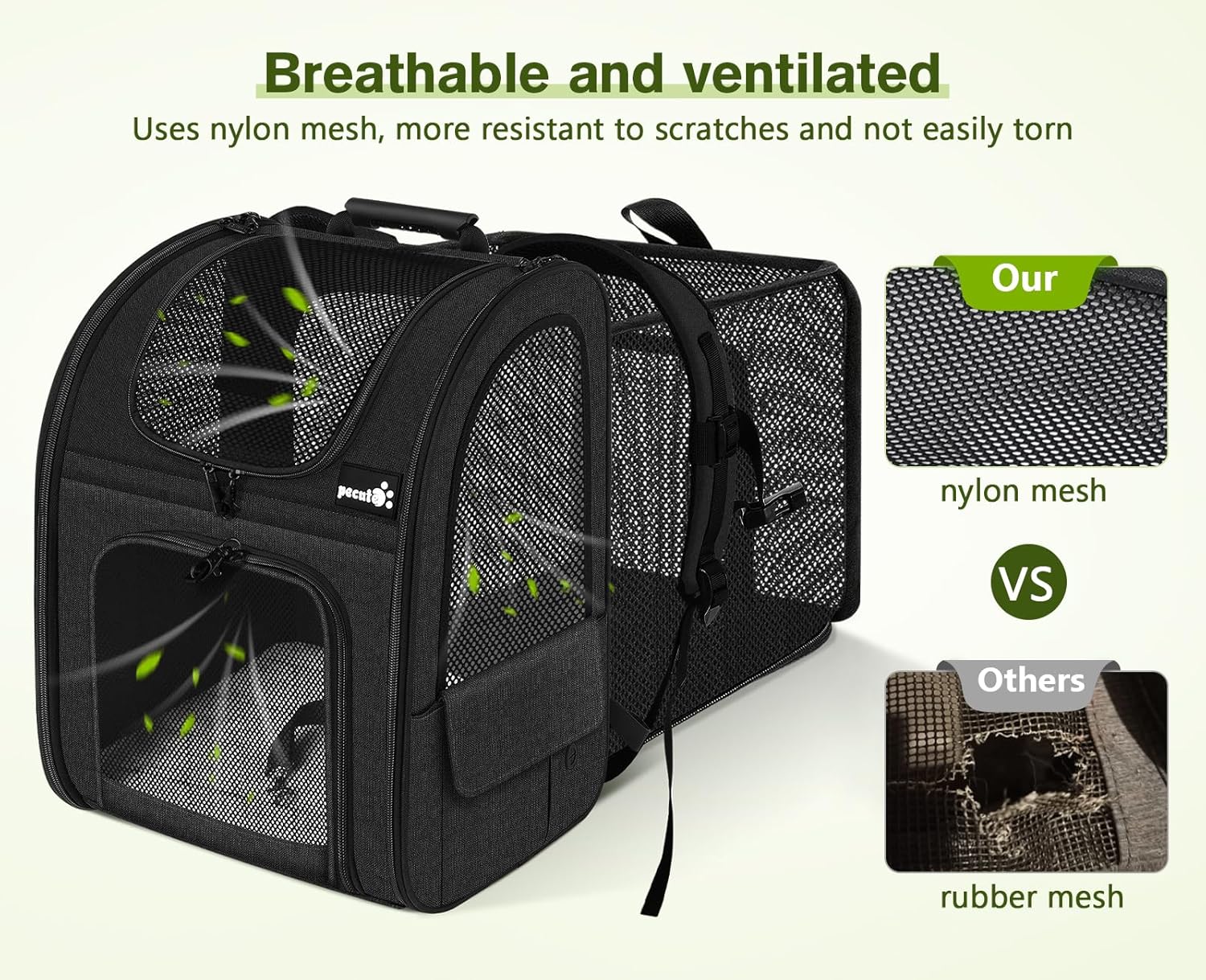 Pecute Pet Carrier Backpack, Large Cat Carrier Backpack, Expandable Cat Backpack with Breathable Mesh for Medium Large Cats, and Small Dogs, Dog Backpack Carrier for Travel Hiking Black
