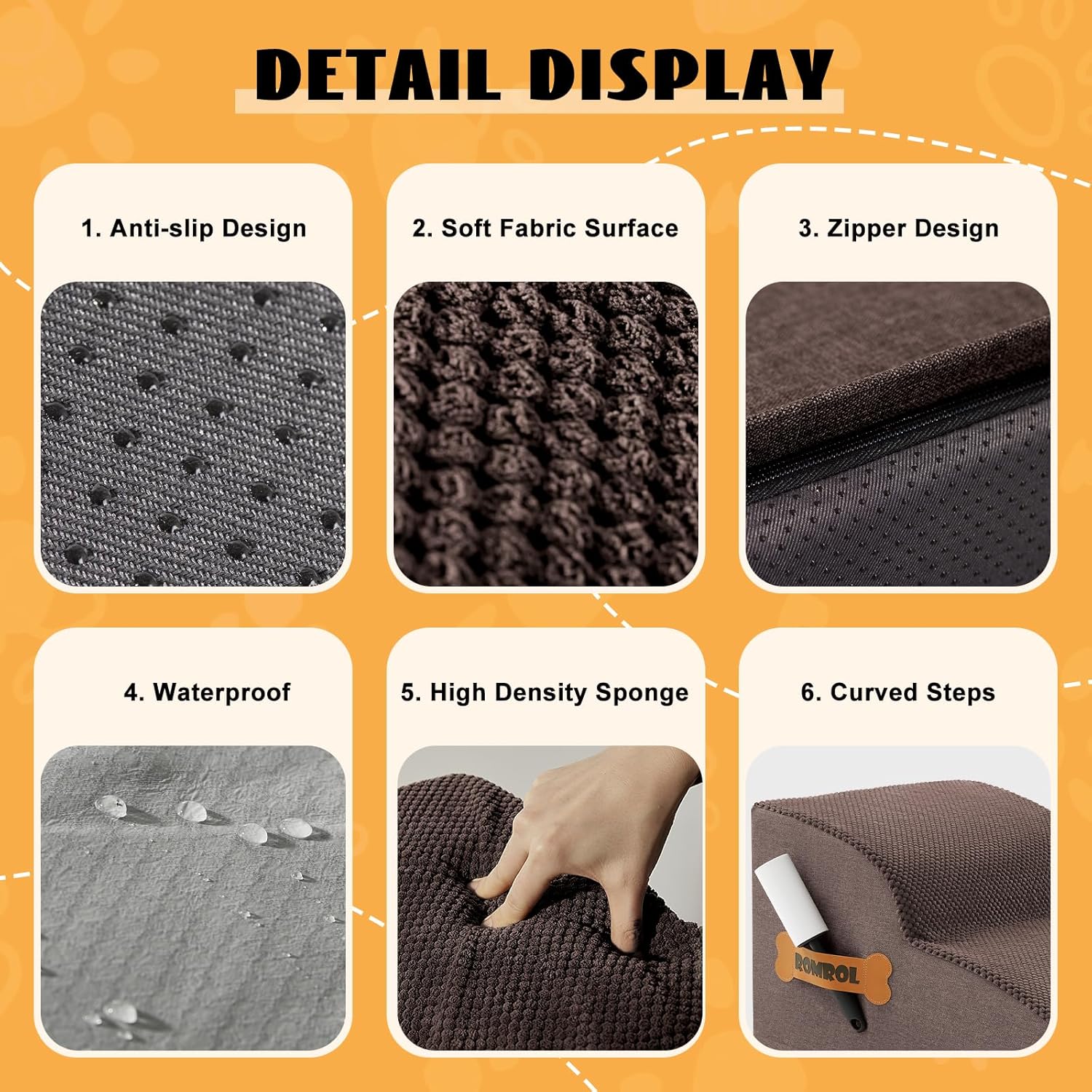 - STABLE AND NON-SLIP: Surface layer of the dog ladder is made of thick coral fleece, providing a soft and soft experience for your pet's feet. Back of the coral fleece is a waterproof layer, so you won't worry about the dog peeing. Side of the dog stairs for high beds is made of abrasion-resistant linen so that pets can grind it's paws