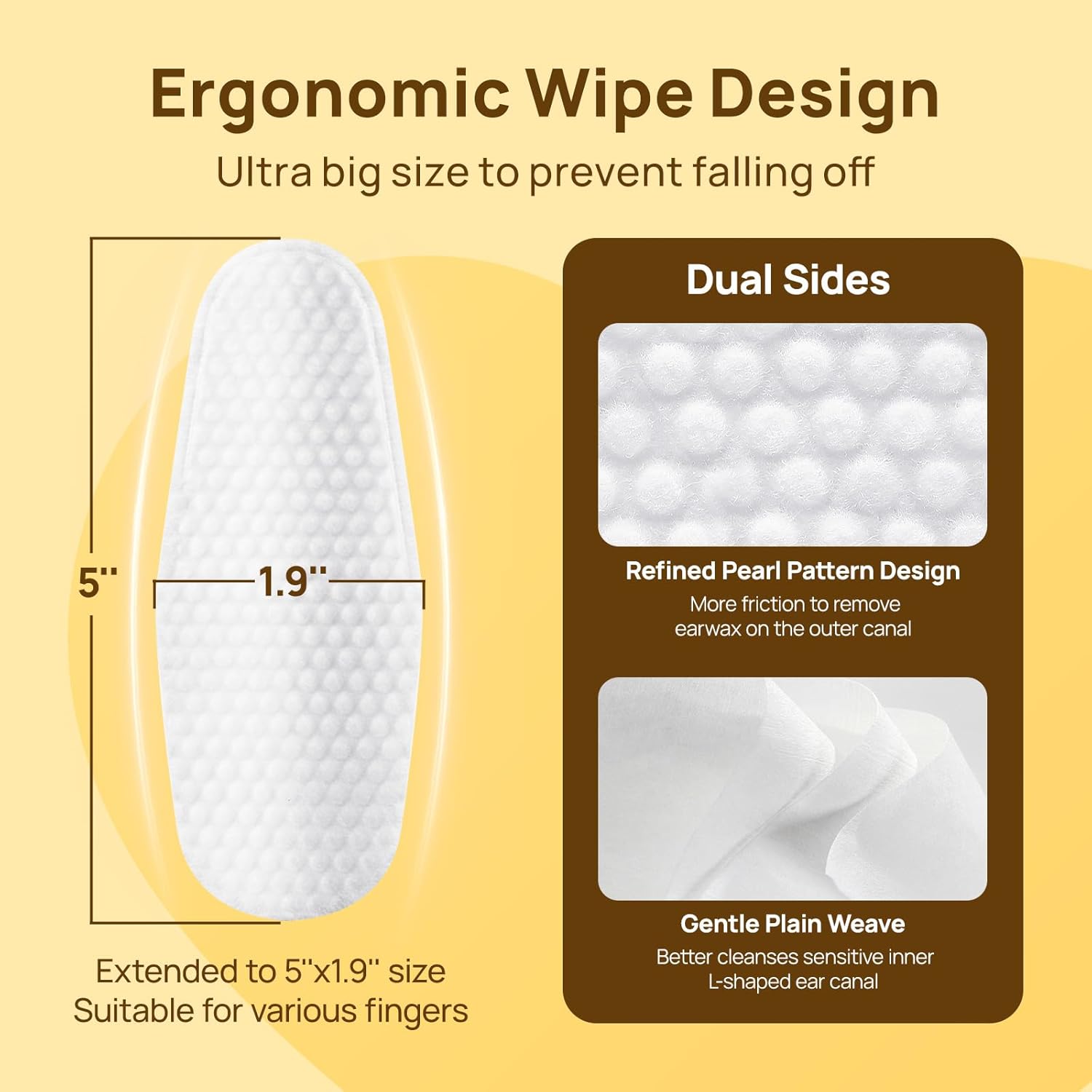 • Easy to Use for Better Ear Care - To accommodate most finger sizes, our ear cleaning for dogs has been expanded to 5'' x 1.9'', ensuring an easy fit for effortless use. Crafted from premium 100% biodegradable plant fibers, they are gentle on the skin yet soft to the touch. Unlike traditional round or square wipes, our design prevents slipping into your dog's ears, avoiding awkward mishaps