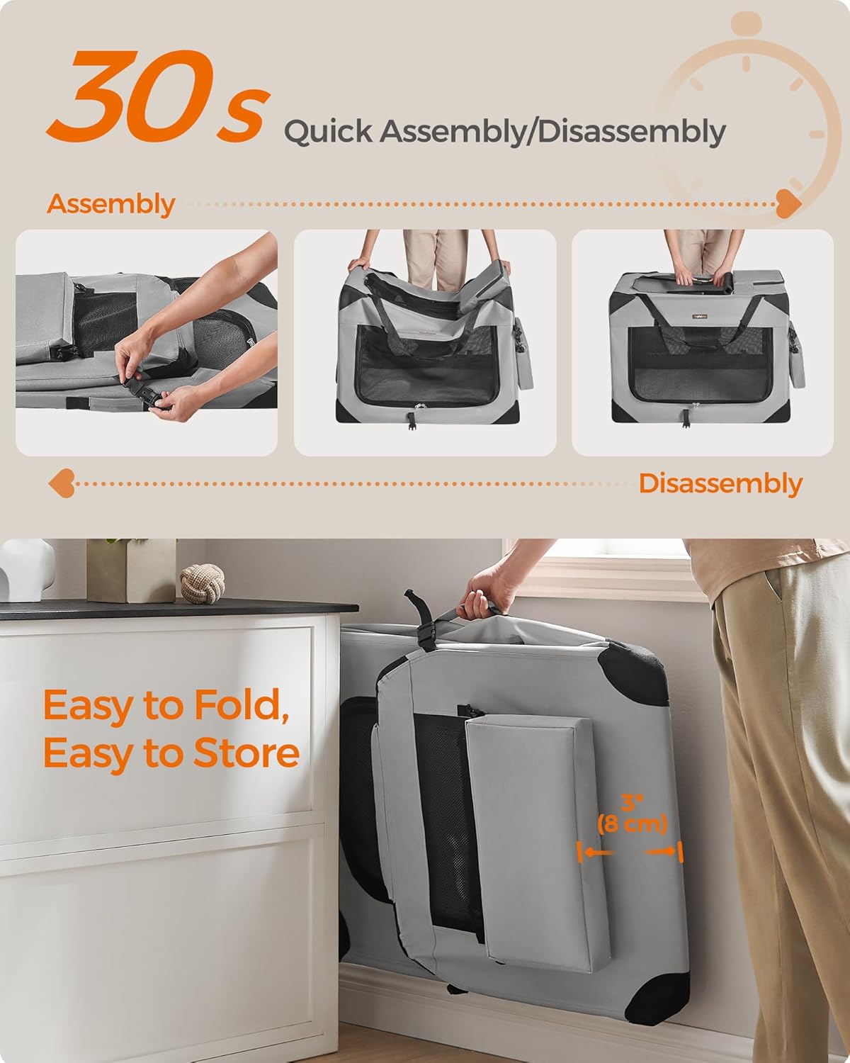 Feandrea 36 Inches Collapsible Soft Dog Crate, Portable Travel Dog Crate for Indoor and Outdoor Use, Dog Carrier Kennel with Safety Zippers, for Living Room, Car, Travelling, Smoke Gray UPDC090G02