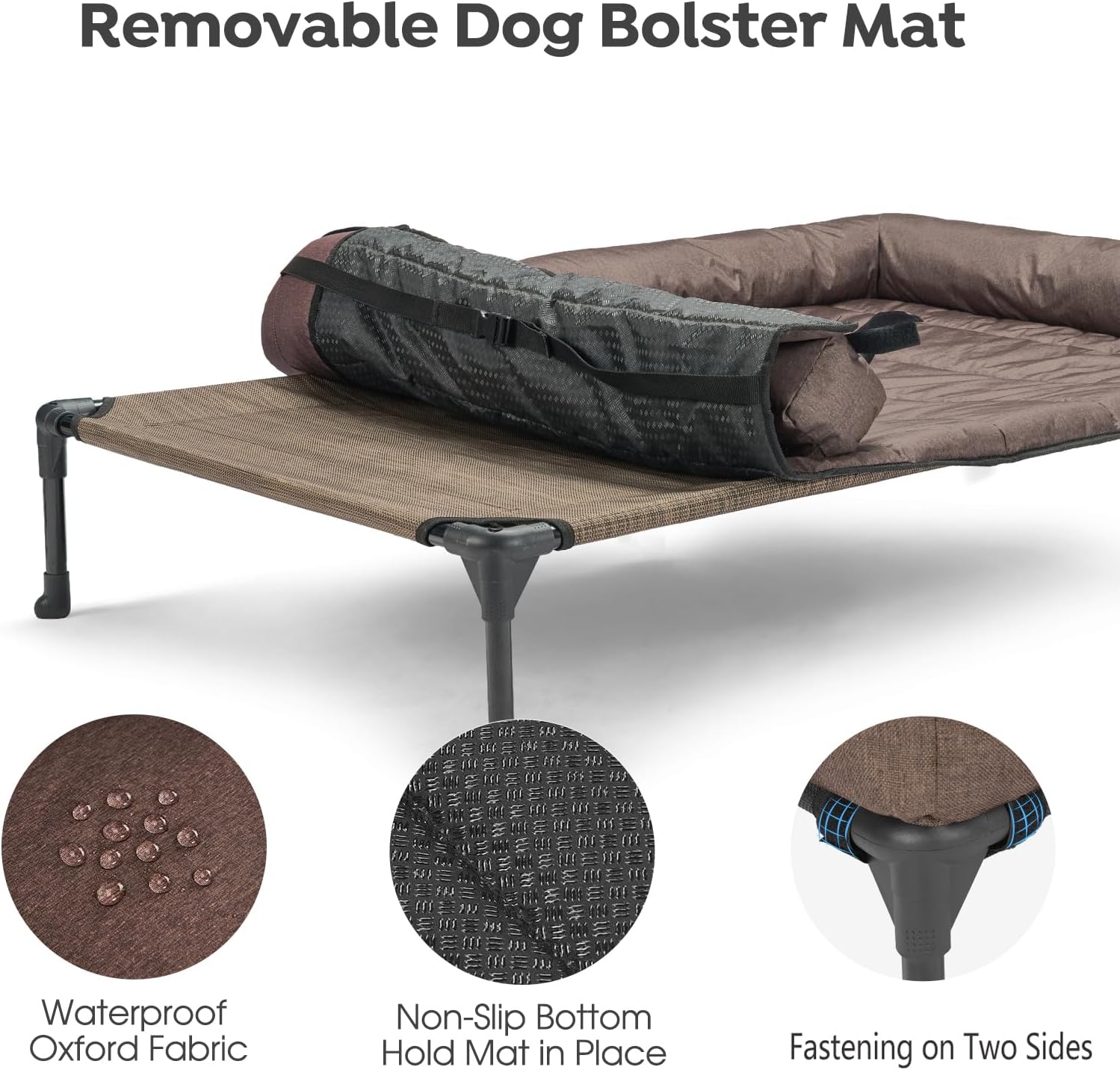 Veehoo Cooling Elevated Dog Bed Add Removable Waterproof Bolster Cushion Mat, Raised Pet Cot with Breathable Teslin Mesh, No-Slip Feet, Dog Couch Bed for Indoor Outdoor, Large, Brown CWC2331B