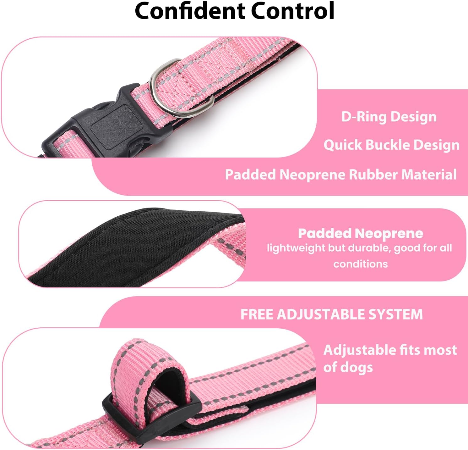 Reflective Dog Collar Padded with Soft Neoprene Breathable Quick Release Basic Dog Collars for Medium Dogs Pink Girl