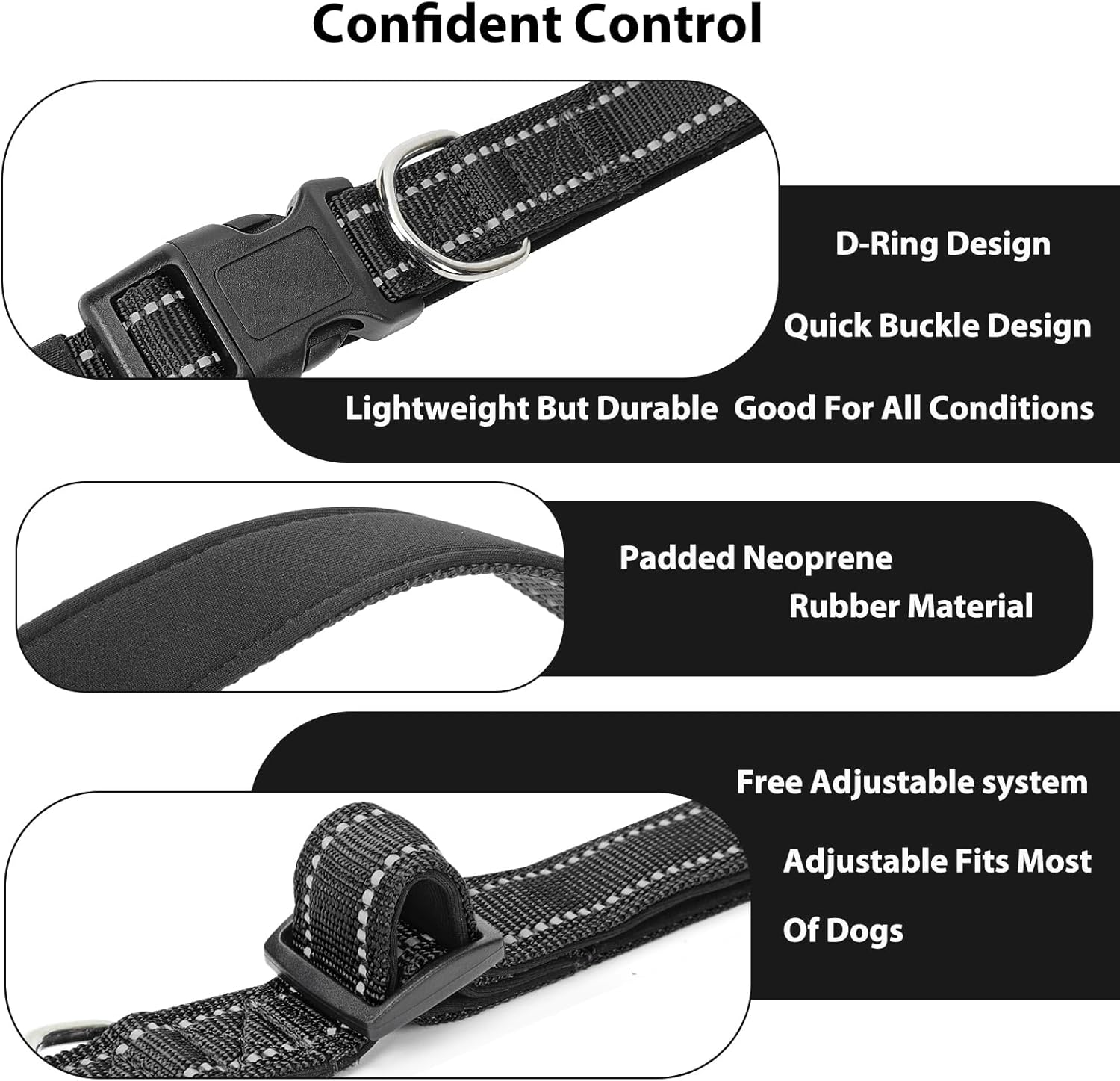 Reflective Dog Collar Padded with Soft Neoprene Breathable Quick Release Basic Dog Collars for Medium Large Dogs Black Boy Girl