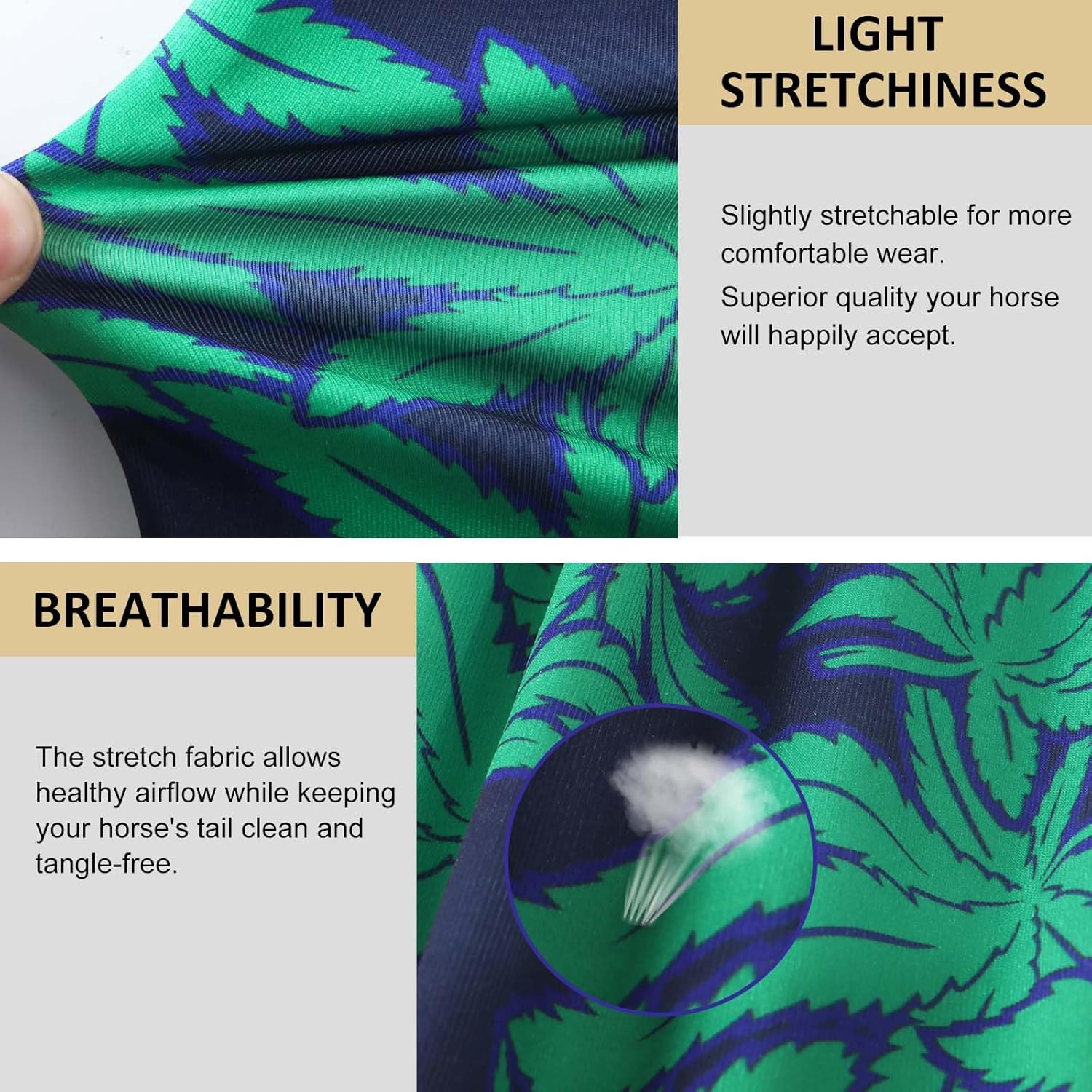 - Breathable: High level of breathability allows healthy airflow while keeping your horse’s tail clean, tangle-free, and lasts in all weather conditions.