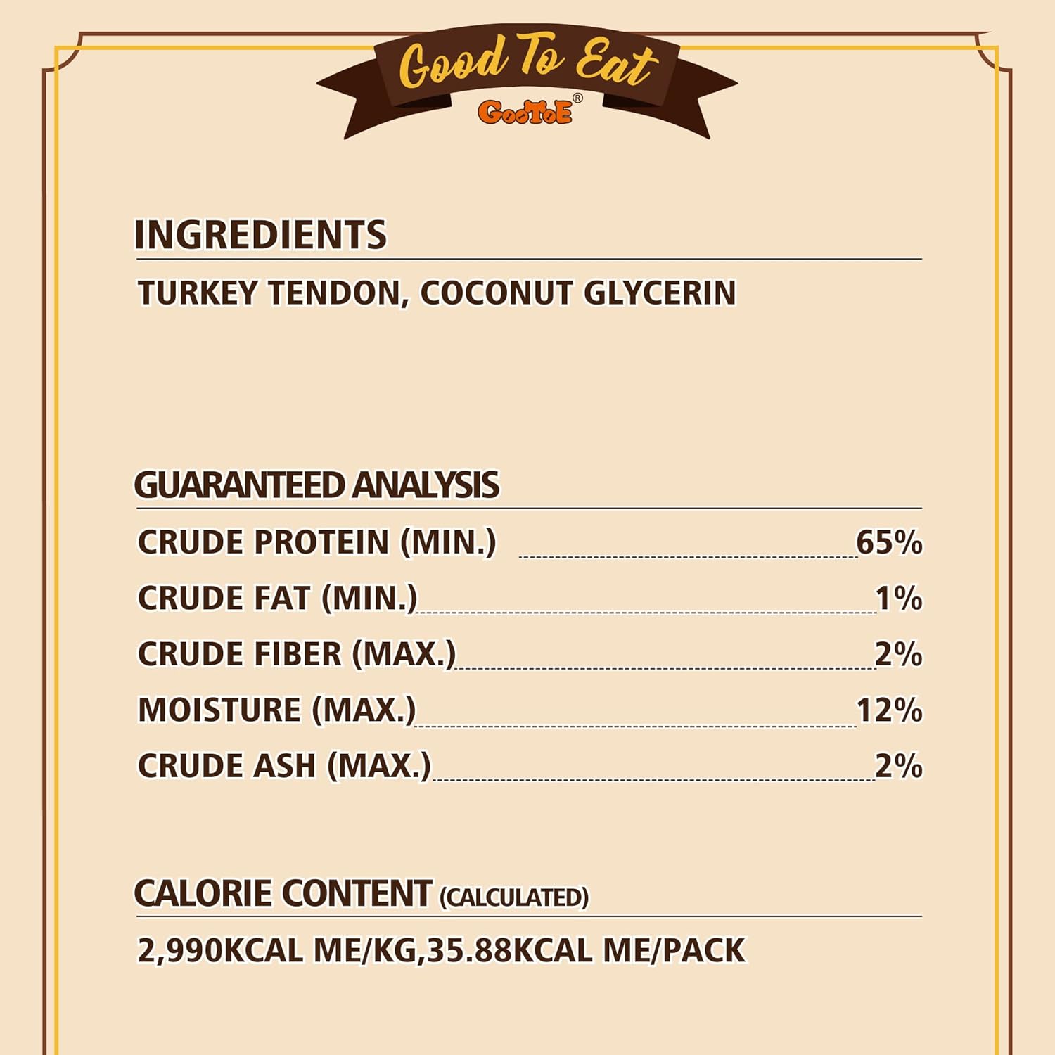 • USA-Sourced Turkey Tendon: GooToE turkey tendon dog treats are made entirely from premium USA-sourced turkey, a commitment to the highest standards of quality and taste.