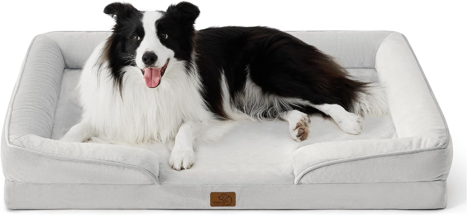 Bedsure Orthopedic Dog Beds Large Sized Dog - Washable Large Dog Cat Bed Waterproof, Comfort Dogs Couch Sofa with Washable Removable Cover, Pet Bed with Nonskid Bottom, Light Grey, 35"