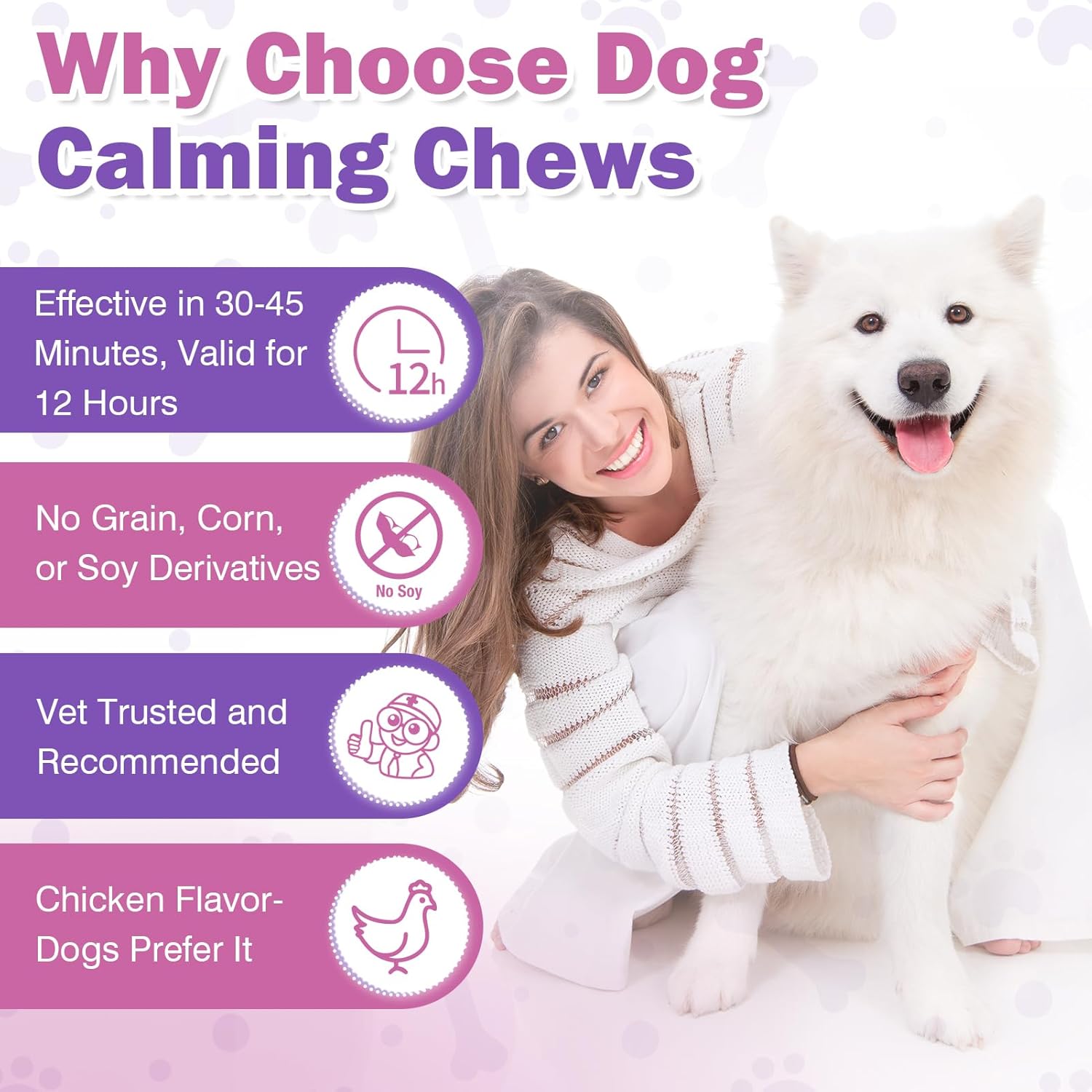- [Promotes Dog Calm and Anxiety Relief for Dogs] Calming chews for dogs effectively soothe and reduce dog anxiety, and dog calming treat provide a sense of calmness for dog. Ideal for various situations such as thunderstorms, separations, car rides, and veterinary visits, dog calming chews help relief anxiety for dogs and find peace of mind. Dog calming treats are specifically formulated to aid in reducing anxiety and promoting better sleep in dogs. Hemp chews for dogs provide dog hours of calm