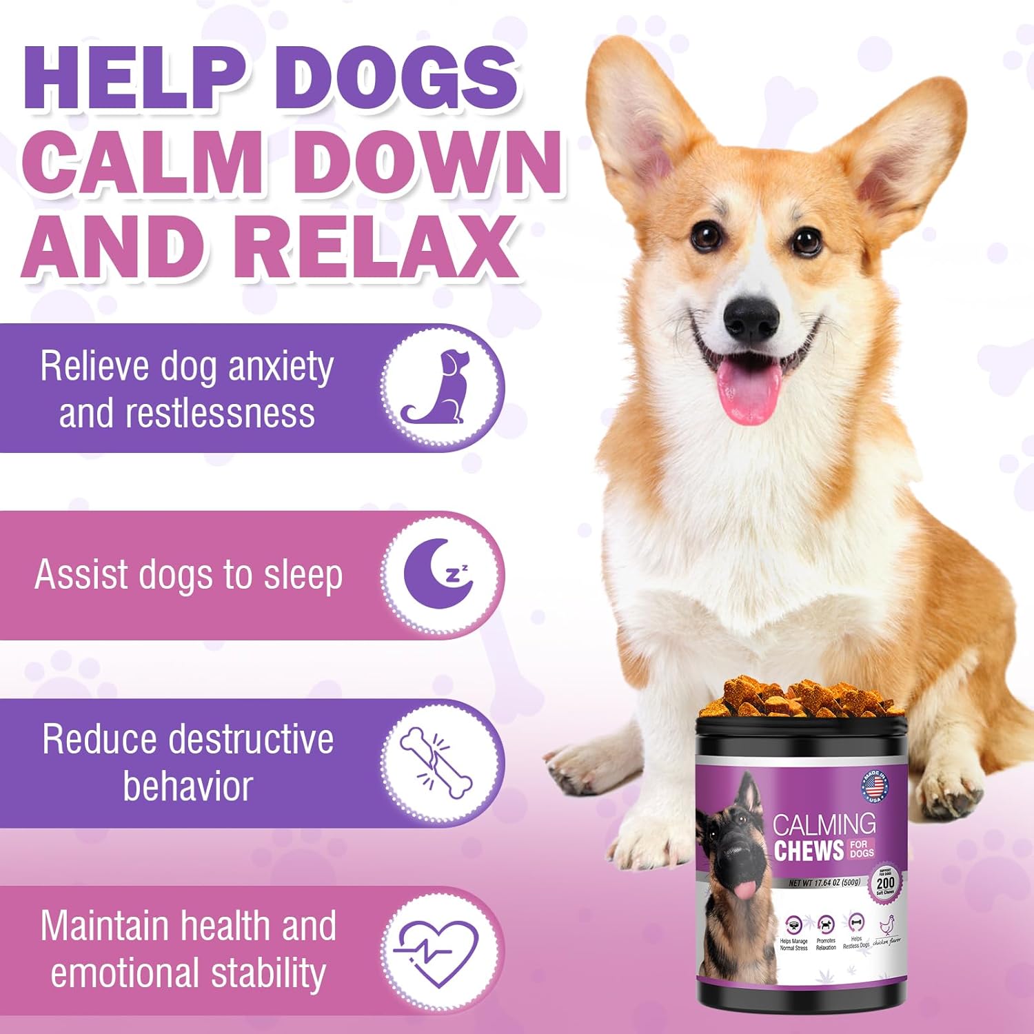 - [More Cost-Effective Calming Dog Treat] Each package contains 200 calming treats for puppies, catering to dogs of various sizes. The multi-packs of hemp dog treats are designed for long-term use, allowing you to adjust the dosage of dogs calming chews of based on dog's needs. No matter what type of dog, hemp calming chews for dog are effective and calming aid for dogs ensure pet calm. For more serious anxiety-related issues, it's recommended to consult veterinarian before using dog hemp treats