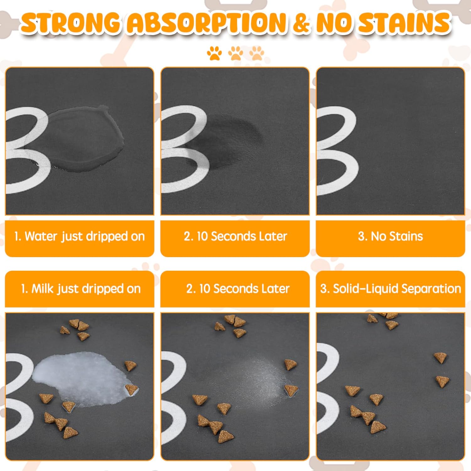 Dog Food Mat, 39.4"x31.5" Largest Absorbent Dog Mat for Food and Water, Non Skid Cat Bowl Mat, No Stains Quick Dry for Pet Water Dispenser Pet Supplies for Messy Drinkers