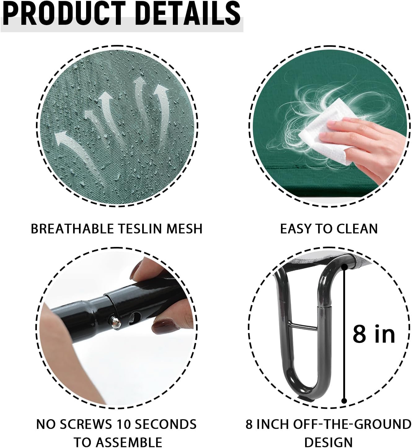 pettycare Elevated Outdoor Dog Bed - Dog Cots beds for Medium Dogs, Waterproof Raised Dog Bed Easy to Assemble, Cooling Elevated Dog Bed with Teslin Mesh, Durable, Non Slip, Up to 40 lbs,Green