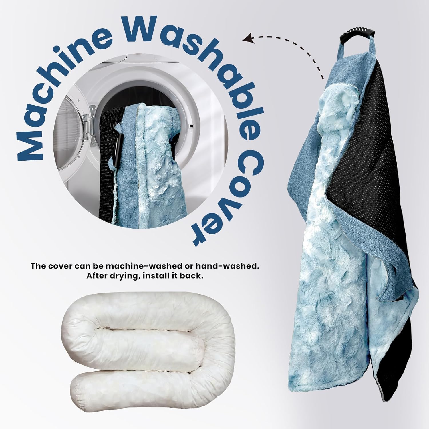 • 𝑷𝒐𝒓𝒕𝒂𝒃𝒍𝒆 𝒂𝒏𝒅 π‘΄π’‚π’„π’‰π’Šπ’π’† 𝑾𝒂𝒔𝒉𝒂𝒃𝒍𝒆: Designed for both comfort and convenience, the dog mat is perfect for pets on the go. With a built-in handle, it’s easy to carry. whether camping, traveling, or protecting car seats. When it’s time to clean, simply remove the cover and toss it in the wash. Keeping your pet’s bed fresh and ready for the next adventure has never been easier.